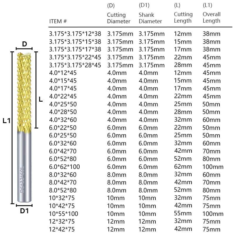 1 قطعة معطف التيتانيوم نهاية مطحنة CNC بت التوجيه 3.175 مللي متر-12 مللي متر عرقوب PCB الذرة قاطعة المطحنة كربيد