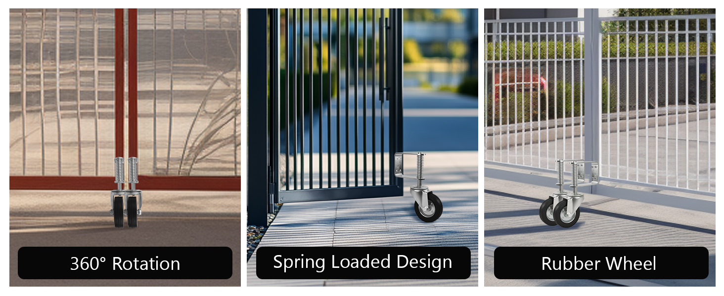• 【تصميم فريد】: عجلات بوابة السياج المطورة محملة بنابض لضبط الارتفاع تلقائيًا على الأرض غير المستوية أو الخشنة، وقد تم تصميم عجلات البوابة بمحامل كروية مزدوجة دقيقة لضمان التشغيل السلس والموثوق.