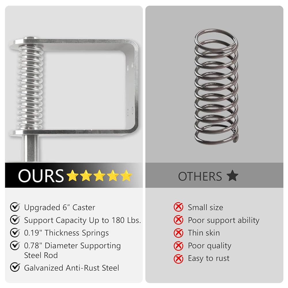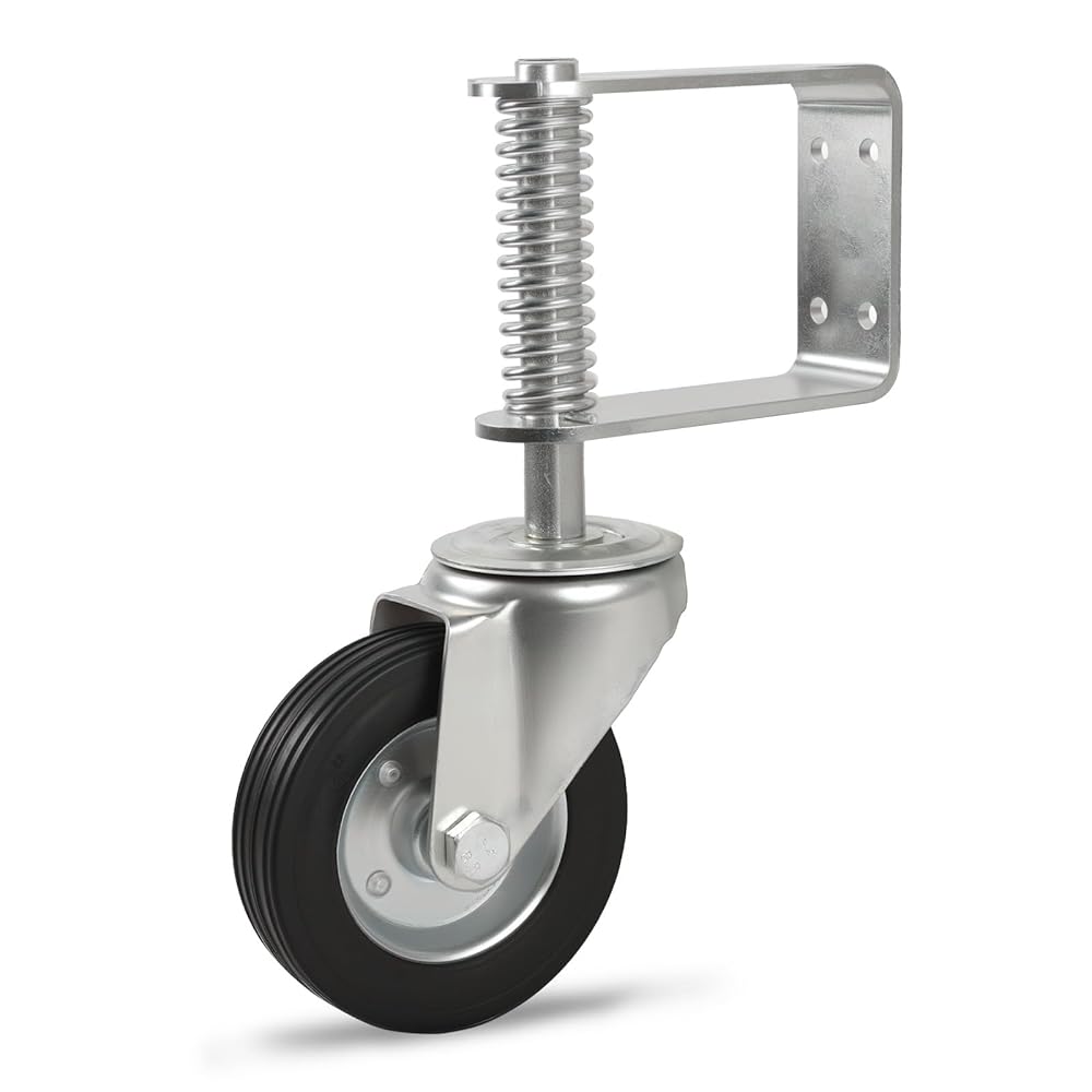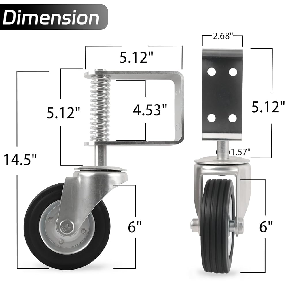 عجلة بوابة ترقية، سعة تحميل 1700 رطل، عجلة بوابة شديدة التحمل مقاس 6 بوصات، دوران 360 درجة، محملة بنابض، سميكة، مقاومة للتآكل والصدأ، للبوابات الخشبية وبوابات الأنابيب المعدنية