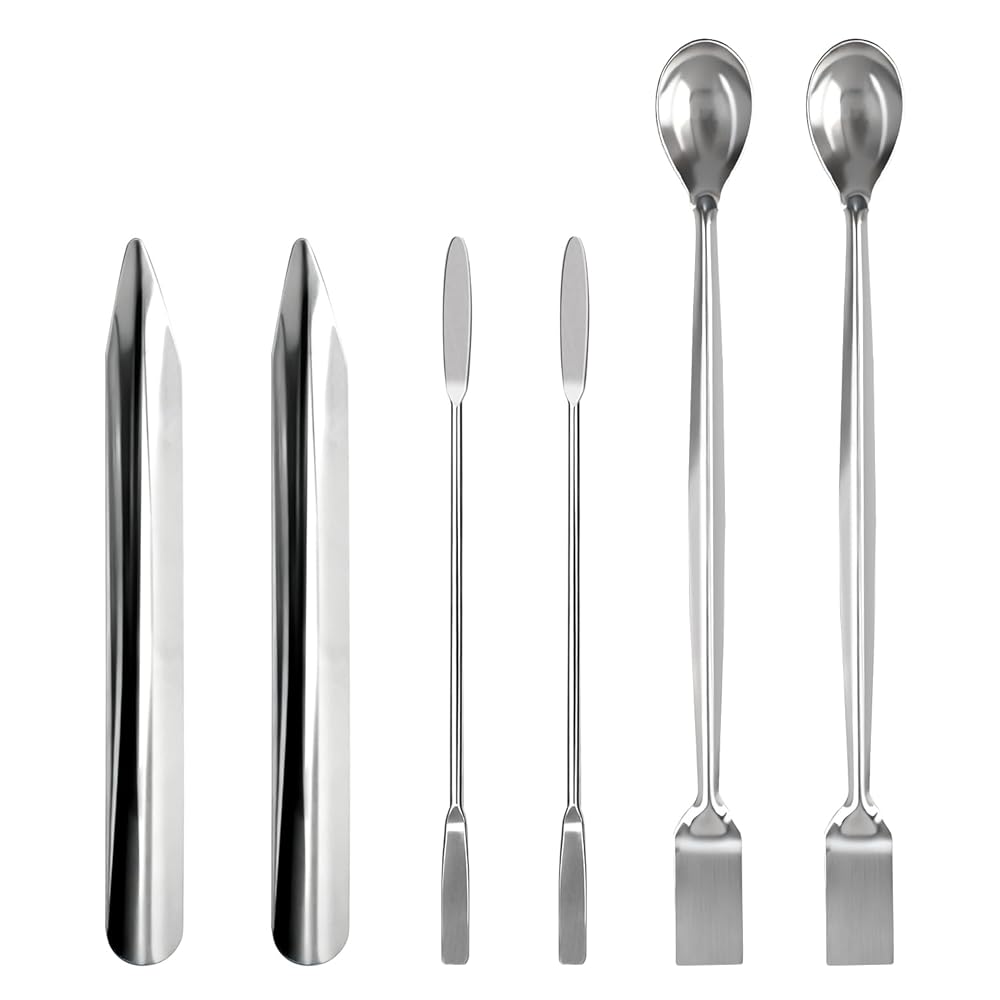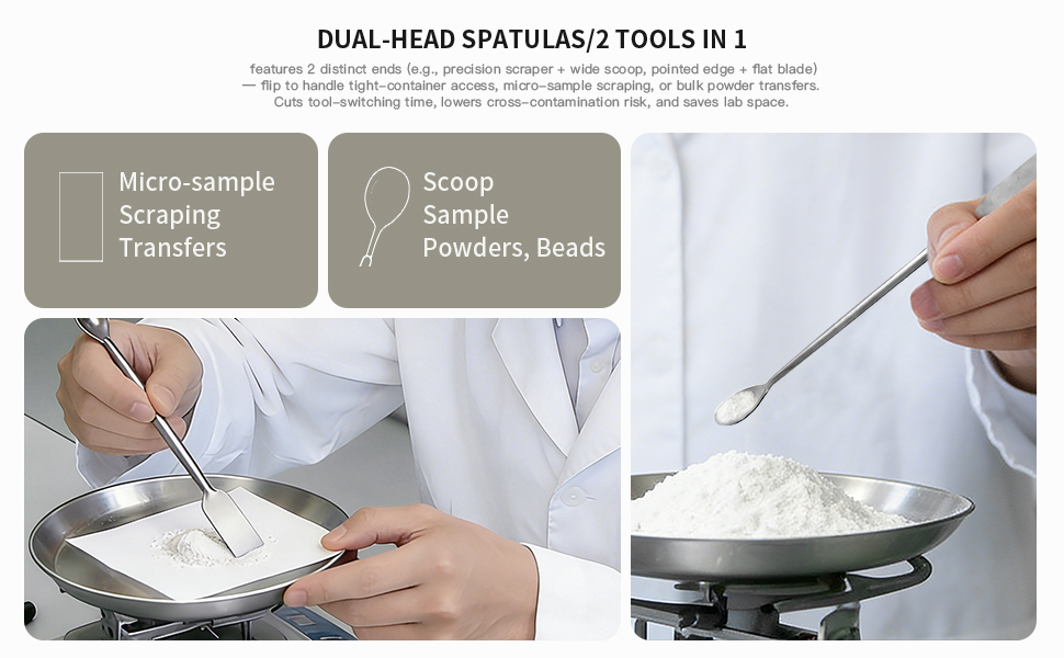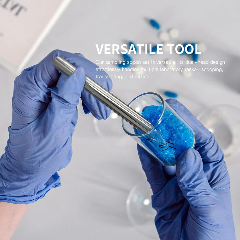 • مجموعة أدوات متعددة الاستخدامات 6 في 1: تتضمن ملعقتين كبيرتين، وملعقتين صغيرتين، وملعقتين لأخذ العينات، تغطي مهام معملية متعددة (المغرفة، والنقل، والمزج) في مجموعة واحدة مدمجة.