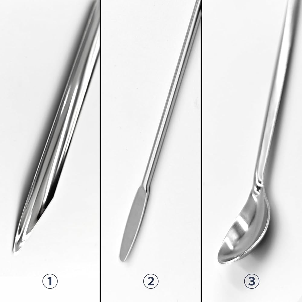 • مواد فاخرة: ملاعق المختبر الخاصة بنا مصنوعة من الفولاذ المقاوم للصدأ الآمن غذائيًا. مقاوم للتآكل، ومتين، وسهل التعقيم، ويلبي معايير سلامة المختبر للاستخدام المتكرر مع المواد الكيميائية أو المساحيق أو العينات. تقليل نفقات إمدادات المختبر على المدى الطويل.