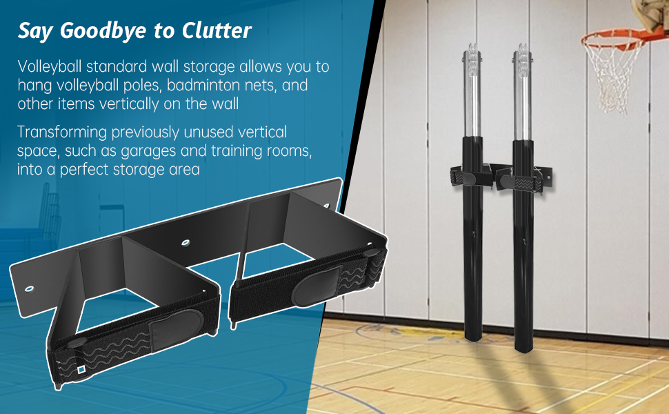 قل وداعًا للفوضى: يتيح لك تخزين الحائط القياسي للكرة الطائرة تعليق أعمدة الكرة الطائرة وشبكات كرة الريشة وغيرها من العناصر عموديًا على الحائط، مما يحول المساحة الرأسية غير المستخدمة سابقًا، مثل المرائب وغرف التدريب، إلى منطقة تخزين مثالية. من خلال ترتيب معداتك الرياضية بشكل أنيق على الحائط، ستعزز بشكل كبير جماليات المساحة الخاصة بك ونظافتها.