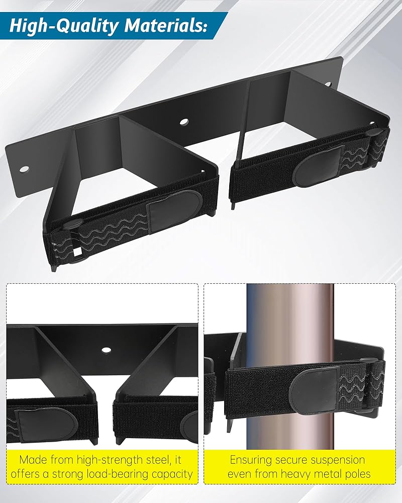 مواد عالية الجودة: رف جدار عمود الكرة الطائرة مصنوع من الفولاذ عالي القوة، ويوفر قدرة تحمل قوية، مما يضمن تعليقًا آمنًا حتى من الأعمدة المعدنية الثقيلة. يتميز حامل الحائط نفسه بأنه مستقر هيكليًا ومجهز بأجهزة تثبيت قوية، مما يضمن عدم تمايله أو سقوطه بمجرد تثبيته على الحائط، مما يضمن سلامة كل من الأفراد والمعدات.