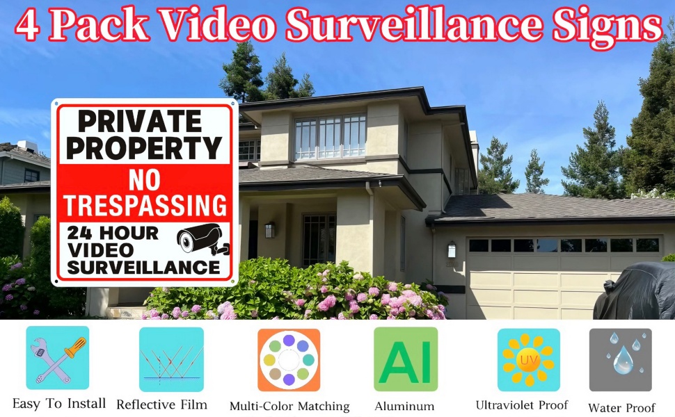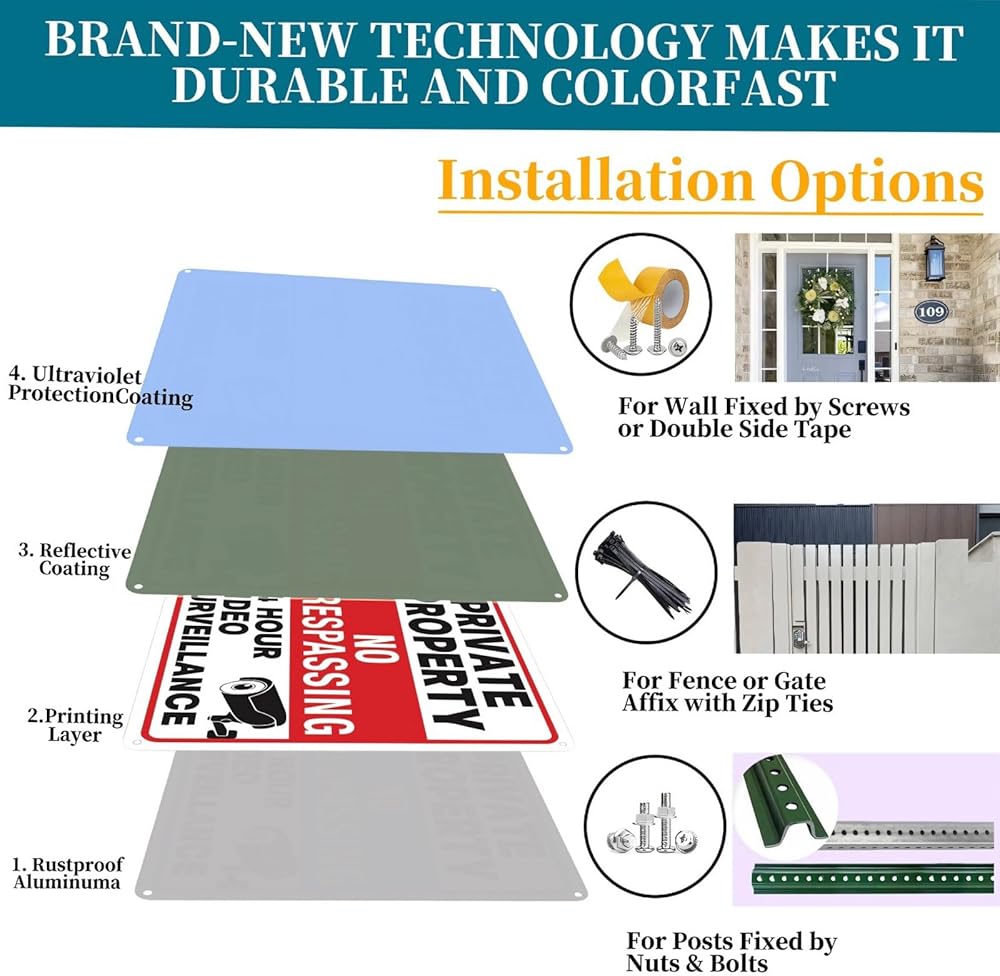 • 1. 【عمر خدمة خارجي طويل】: علامة عدم التعدي على الملكية الخاصة مصنوعة من الألومنيوم المقاوم للصدأ، وتتميز بطبقة عاكسة. نظرًا للمواد عالية الجودة وعمليات الإنتاج المتقدمة، يمكن أن تتحمل علامة المراقبة هذه على مدار 24 ساعة الاستخدام الخارجي طويل الأمد وهي متينة للغاية.
