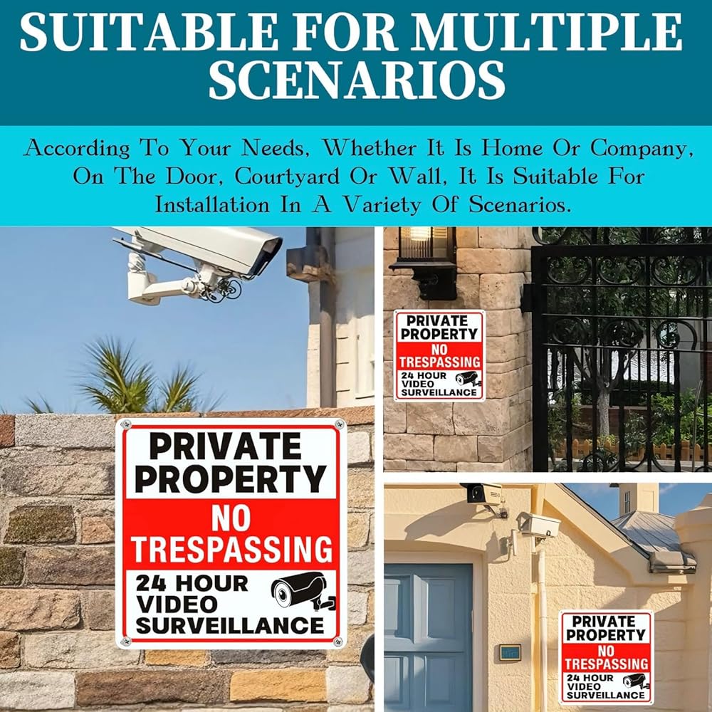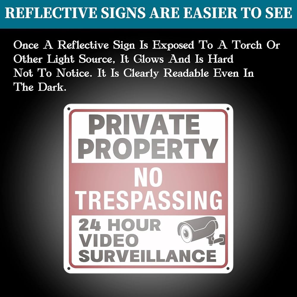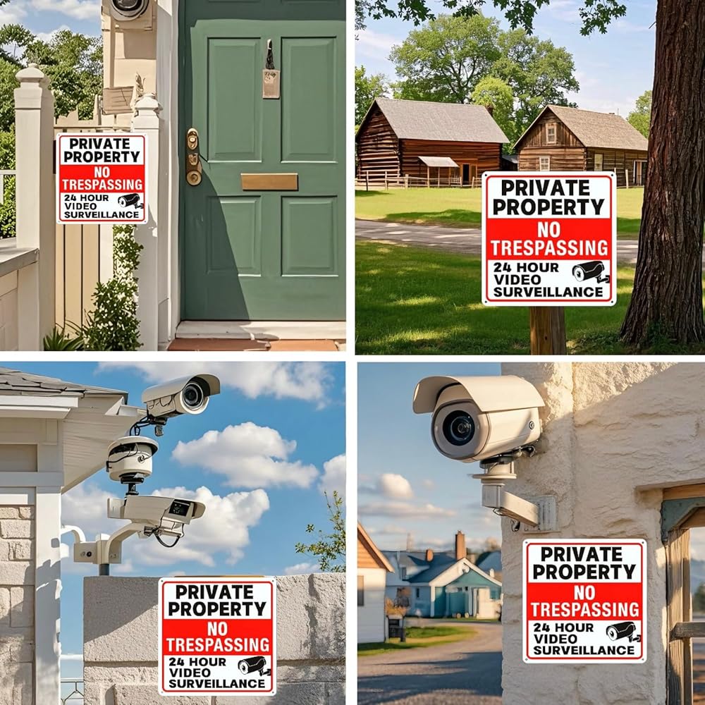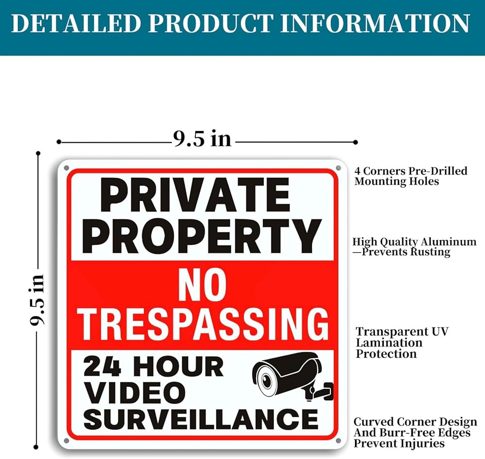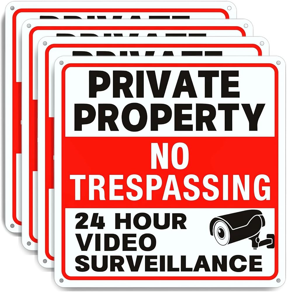 4 عبوات من علامات عدم التعدي على ملكية خاصة، لافتة مراقبة بالفيديو، لافتة كاميرا أمان من الألومنيوم خالية من الصدأ مقاس 9.5 × 9.5 بوصة، سهلة التركيب، تستخدم مواد عاكسة، مناسبة للمنزل/العمل