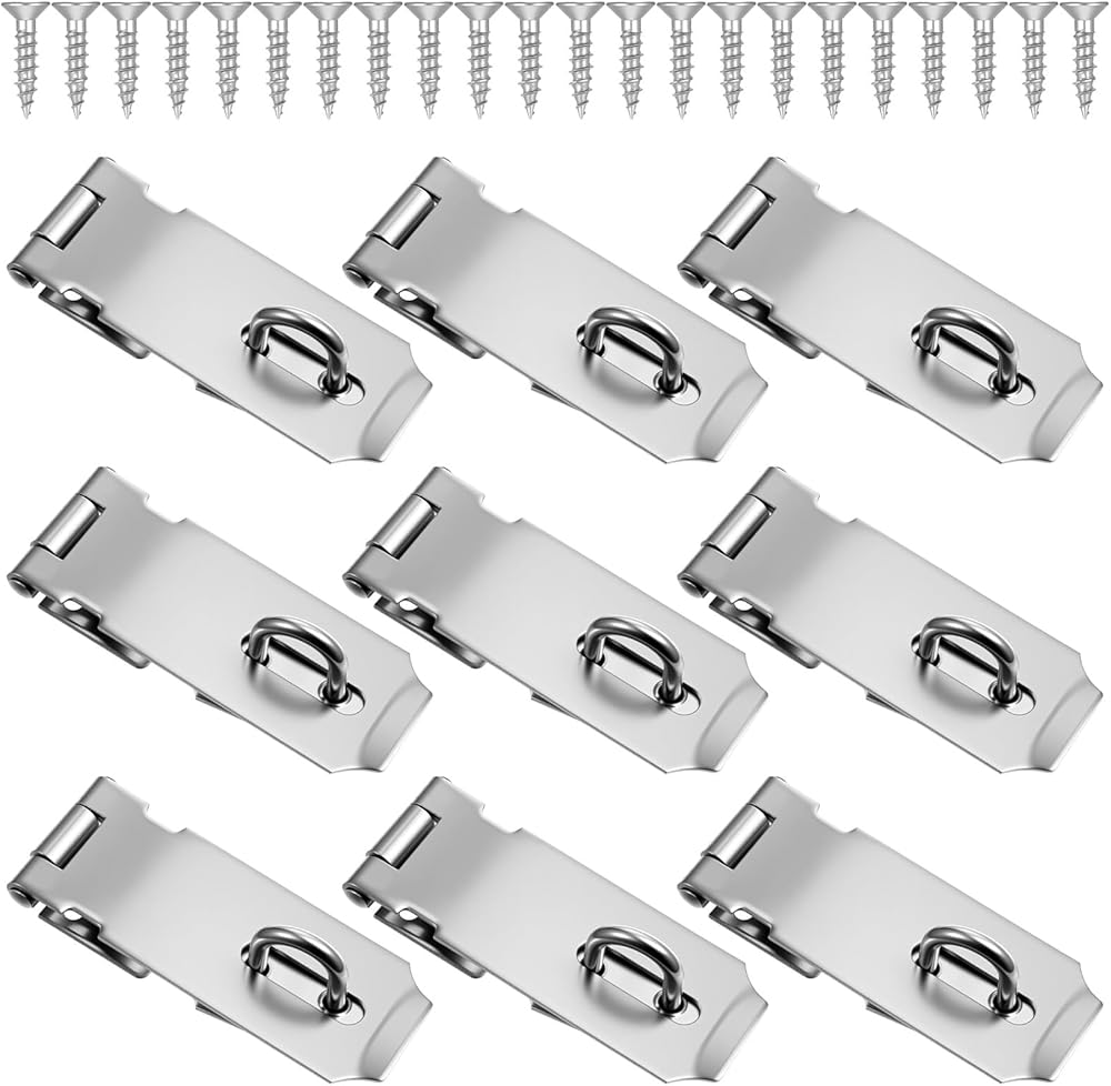10 قطع من مزلاج القفل، مشبك قفل من الفولاذ المقاوم للصدأ، مشبك أمان شديد التحمل مع براغي تثبيت، قفل باب بمشبك للأبواب والخزائن
