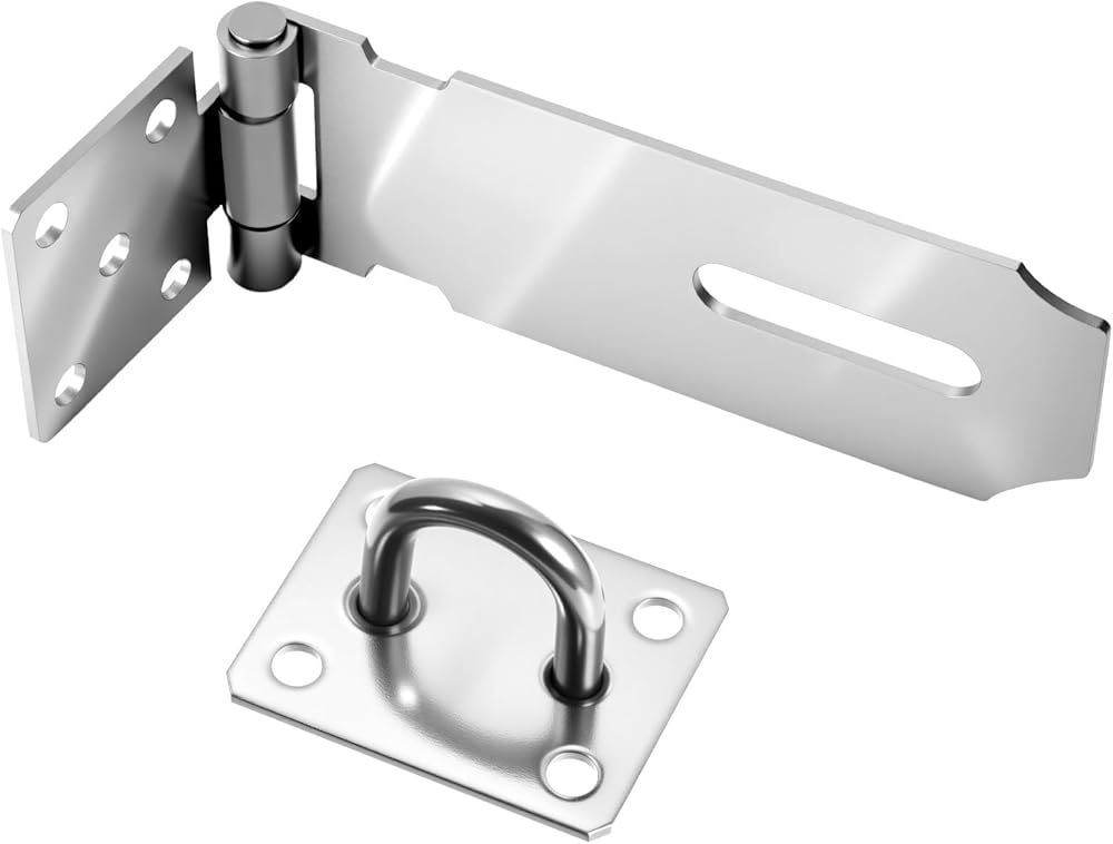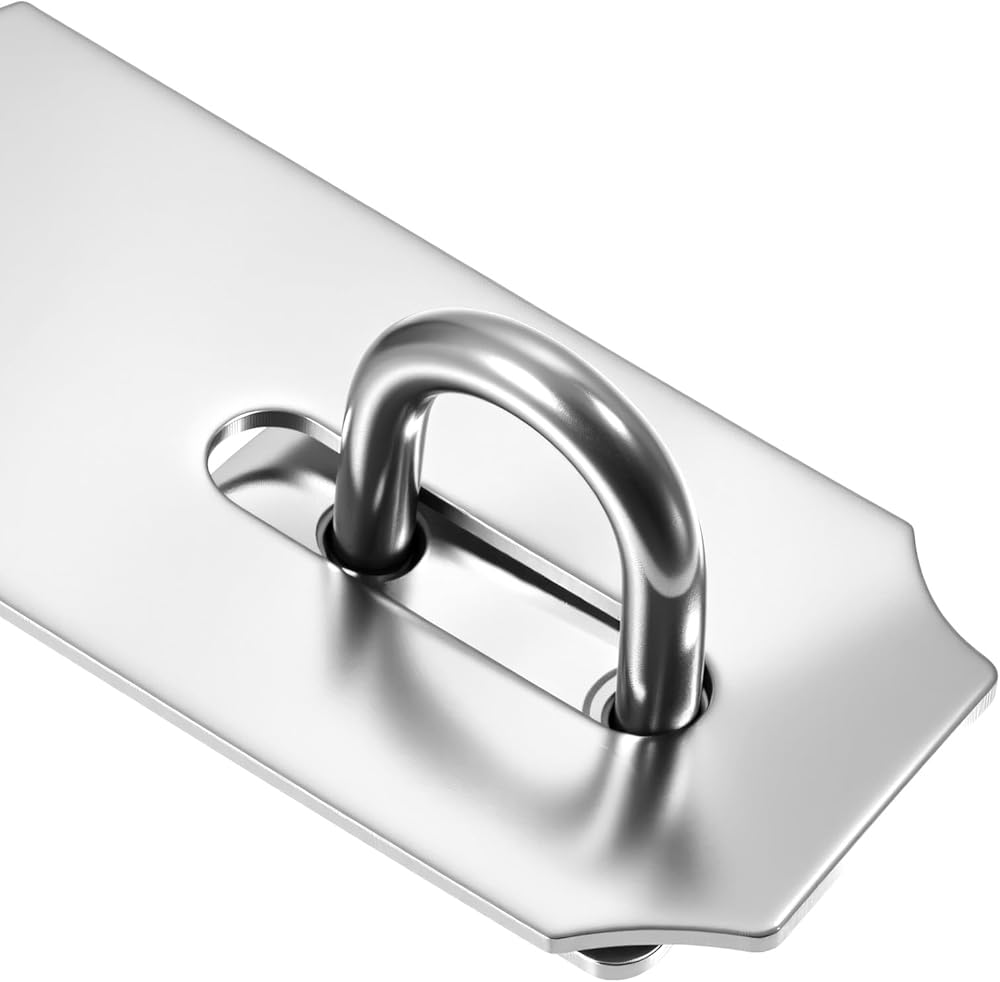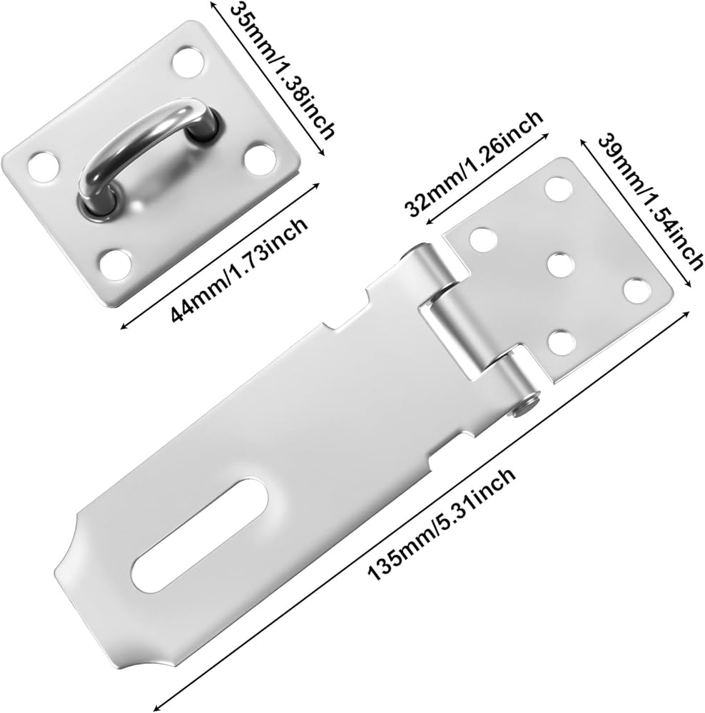 • STURDY MATERIAL - Our padlock hasp latch is made of stainless steel, and its surface is treated with multi-layer electroplating to prevent rusting effectively. The padlock hasp latch is a solid structure and made of thickened material, making it sturdy and strong!