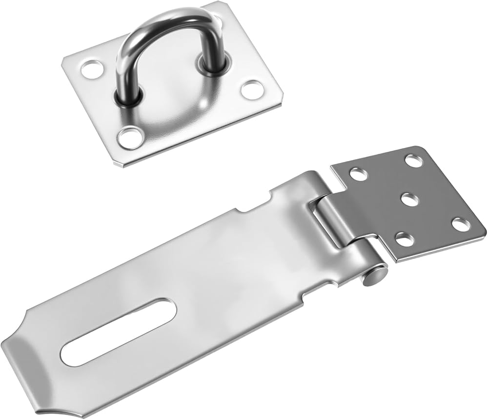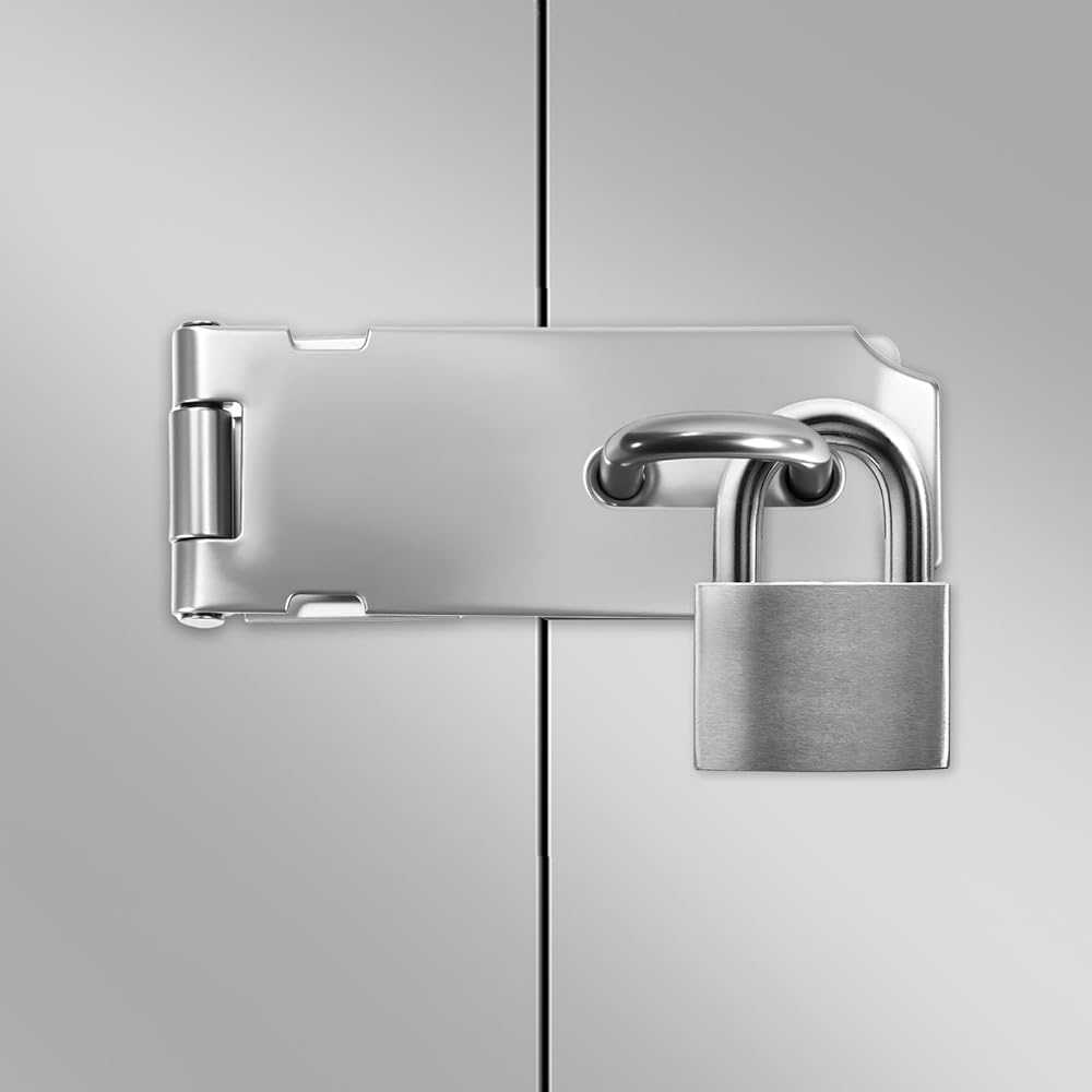 • MULTIPLE USES - These stainless steel lock hasps are suitable for indoor and outdoor and can be used for garden gates, garage doors, storage doors, sheds, storage cabinets, cupboards, tool boxes, etc. And they fit most padlocks, providing good security and practicality!