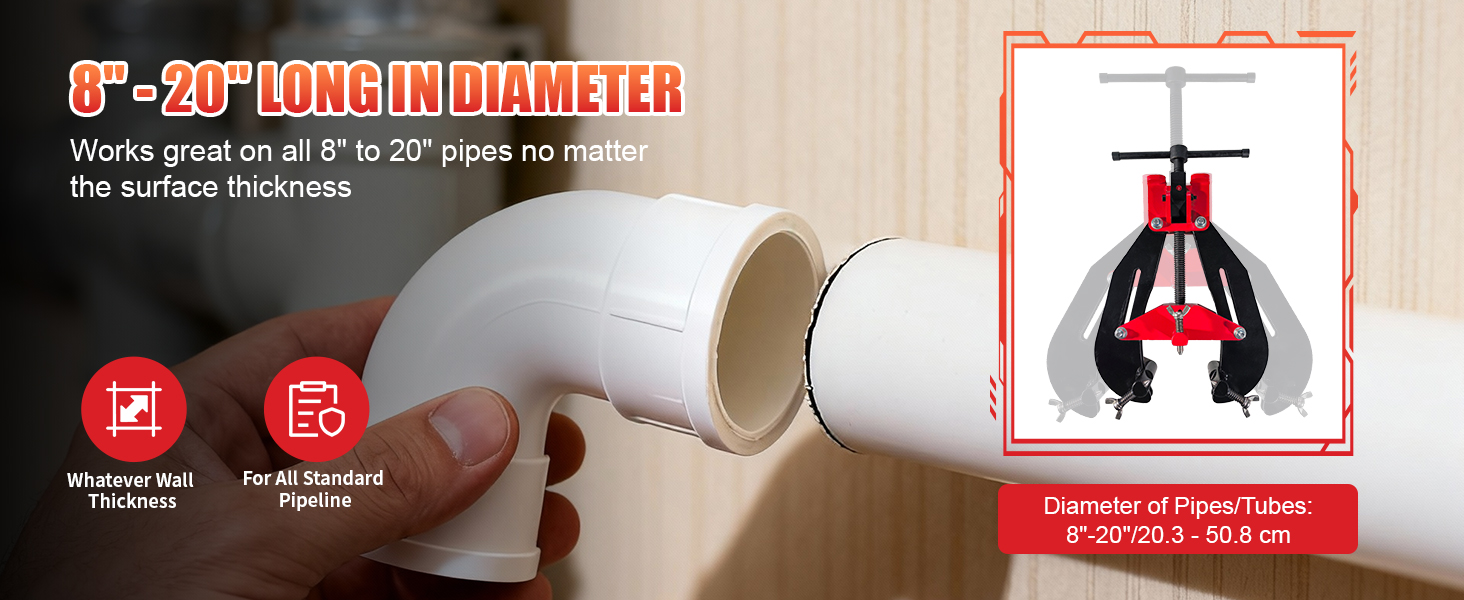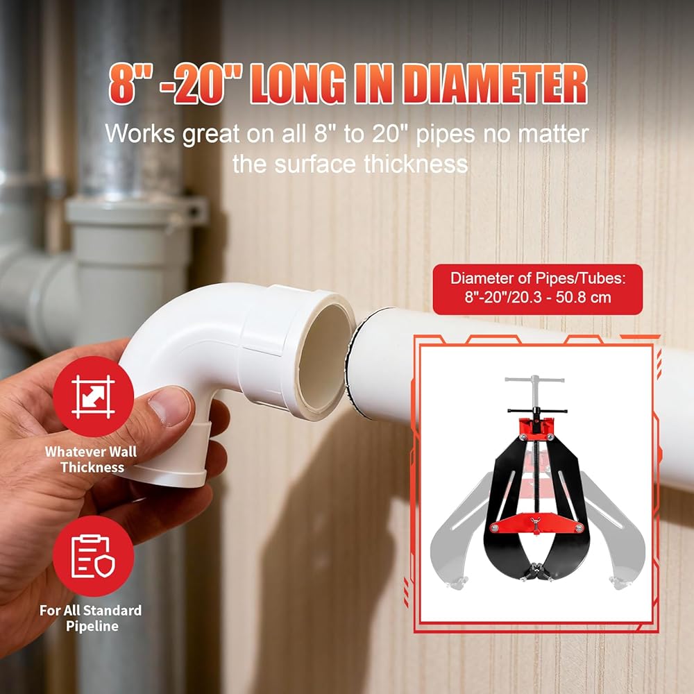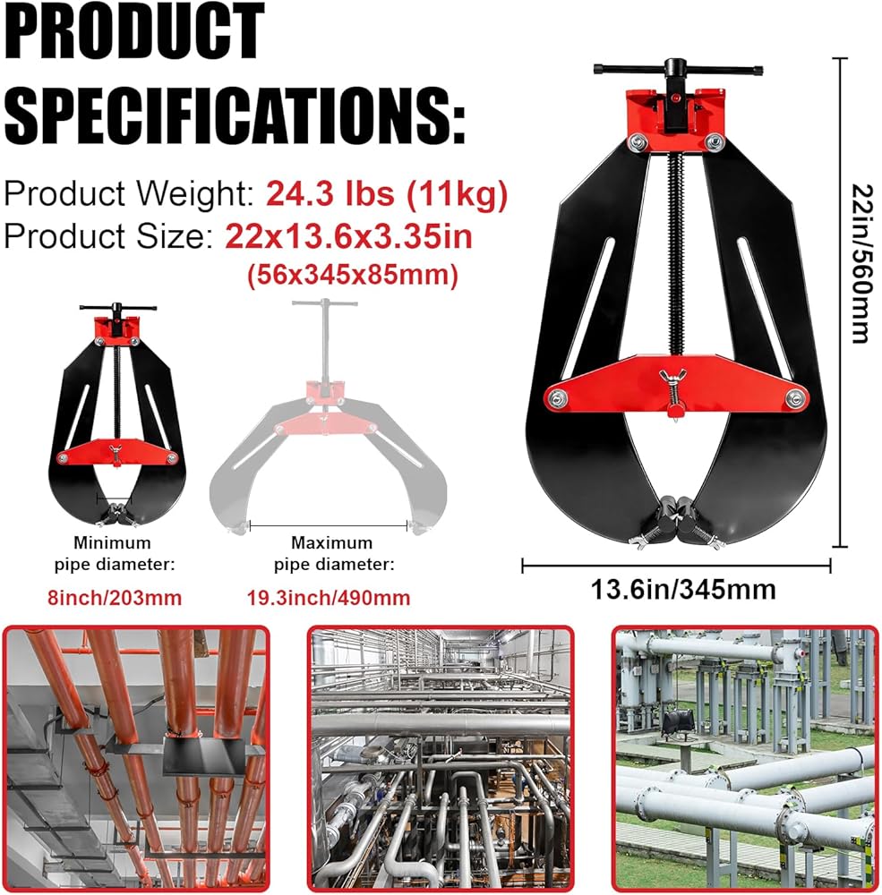 【نطاق قطر الأنبوب عالي التحمل من 8 إلى 20 بوصة】يثبت جميع الأنابيب بشكل آمن من 8 إلى 20 بوصة (20.3 إلى 50.8 سم) في القطر كما هو موضح في مخطط المواصفات مما يوفر تثبيتًا متوازنًا جيدًا للمحاذاة المثالية بغض النظر عن سمك جدار الأنبوب أو المادة.