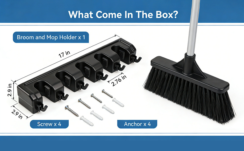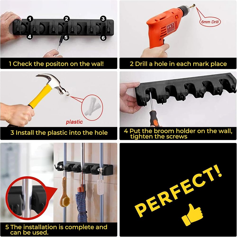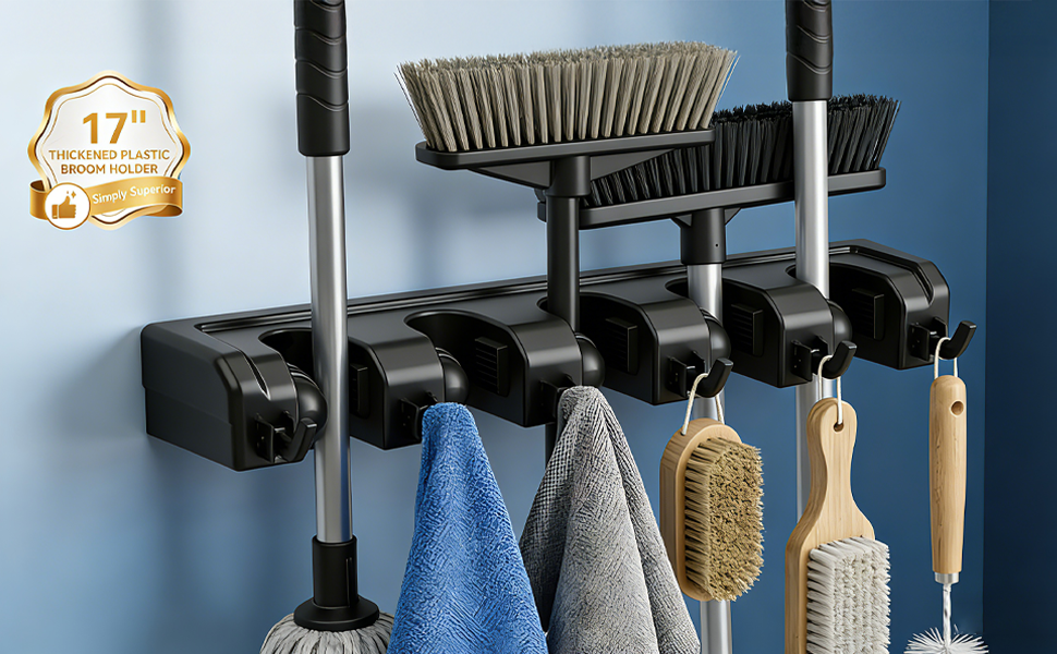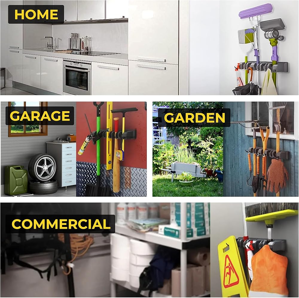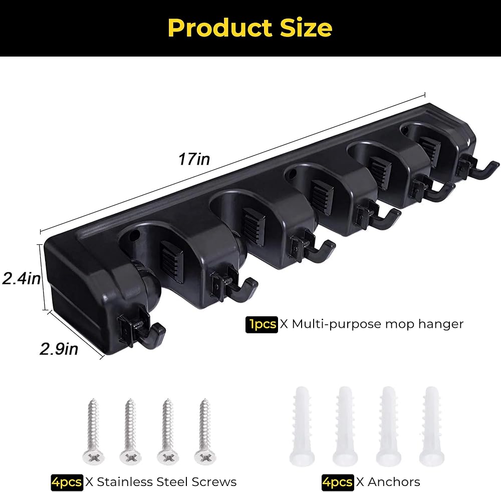 • 【شبكات مطاطية غير قابلة للانزلاق وإمساك آمن】تتميز كل فتحة بشرائط مطاطية ناعمة مضادة للانزلاق تمسك المقابض بإحكام، وتمنع الأدوات من الانزلاق أو السقوط. تصميم سهل التحرير يتيح لك الإمساك بالأشياء بيد واحدة - لا مزيد من المصارعة مع المكانس المتشابكة