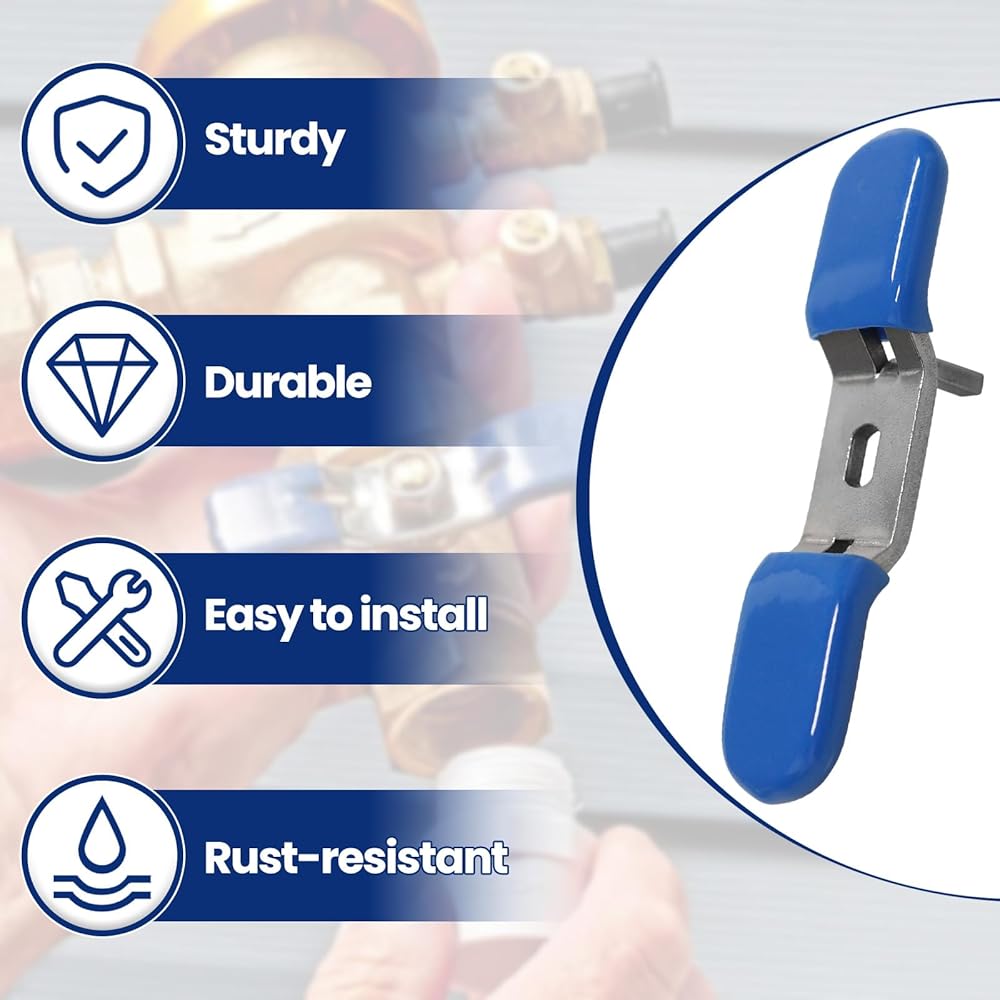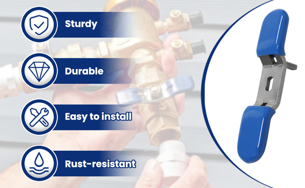 【متانة من الفولاذ المقاوم للصدأ】مقبض صمام كرة الماء مصنوع من الفولاذ المقاوم للصدأ المقاوم للصدأ. مقبض مطلي بالبلاستيك لتوفير الراحة، وغطاء مطاطي لملاءمة آمنة. يدوم طويلاً في الظروف الصعبة.