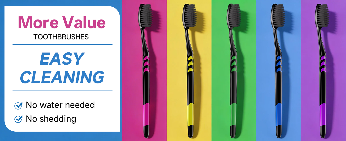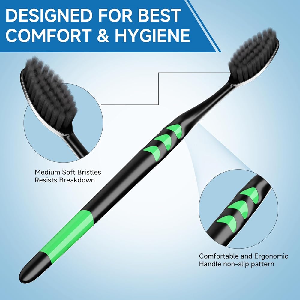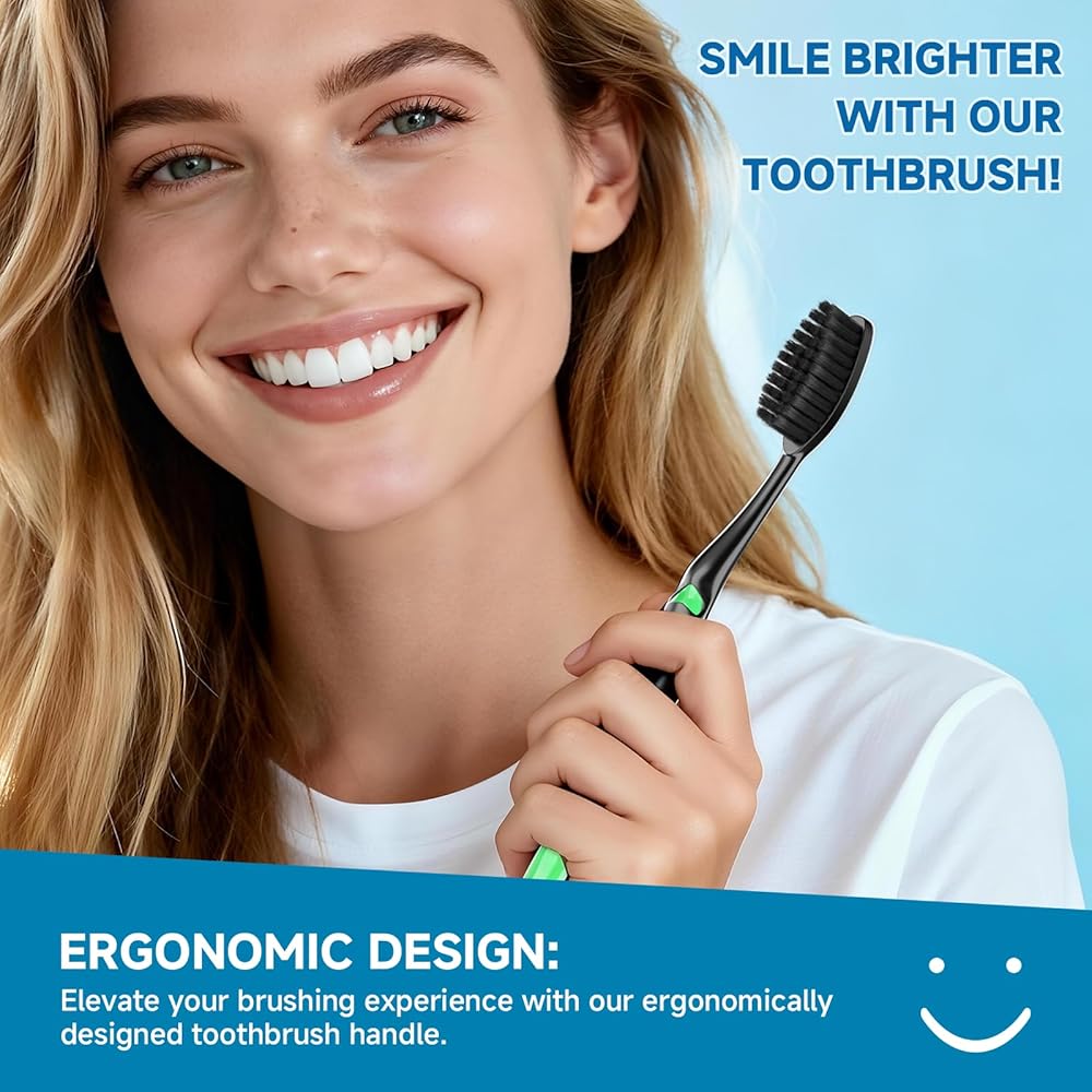 【شعيرات ناعمة عالية الجودة ومقبض مريح】تنظف الأسنان بشكل فعال مع كونها لطيفة على اللثة، لتجربة تنظيف مريحة.