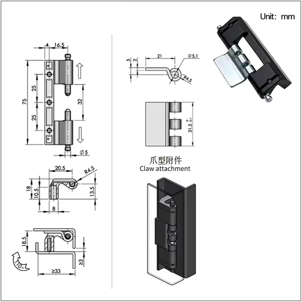 Zinc Alloy Detachable Welded Door Concealed Hinge 1Pcs