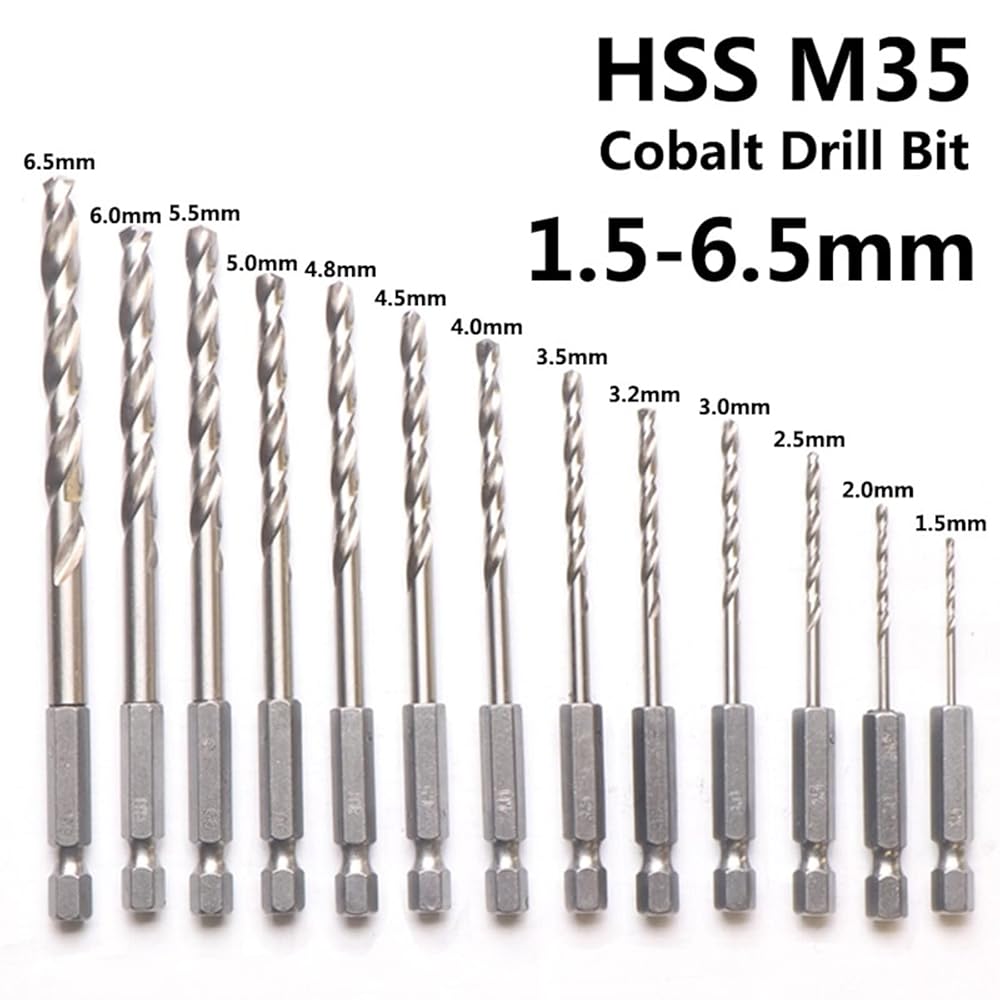13PCS 1.5mm-6.5mm M35 Cobalt Drill Bit HSS-Co Twist Drill Bit Set 1/4 Inch Hex Shank