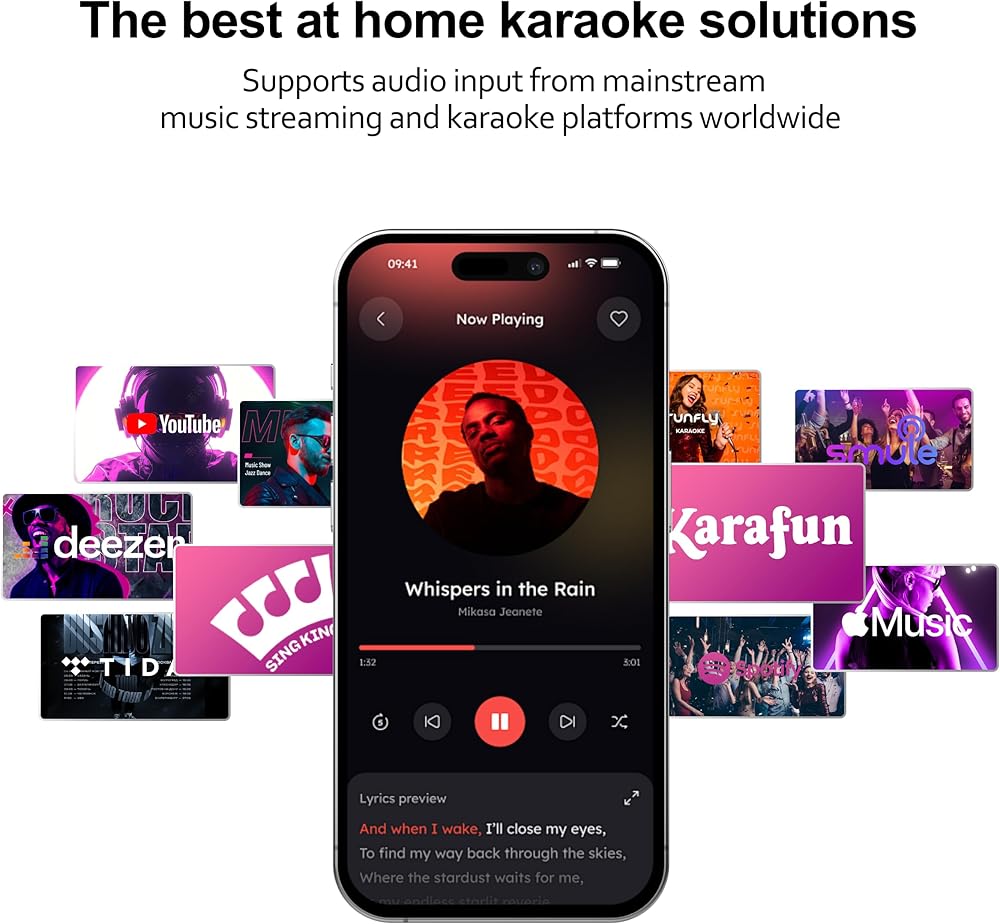 التحكم الصوتي في الوقت الحقيقي لمتعة الكاريوكي المبتكرة استمتع بتجربة ميزة التحكم الصوتي الثورية في الوقت الحقيقي والتي تتيح لك التحكم في الغناء ديناميكيًا. قم بالتبديل بسهولة بين اتباع الصوت الأصلي وأخذ زمام المبادرة، مما يضيف طبقات إبداعية إلى أدائك. توفر هذه الوظيفة الفريدة عنصرًا جديدًا وتفاعليًا للكاريوكي التقليدي، مما يجعل كل جلسة غنائية أكثر جاذبية ومتعة