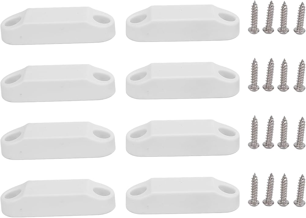 CHICISIS 4 أزواج من أدوات الإمساك بأبواب الأمتعة المغناطيسية ومجموعة حامل، أمان معزز RV للباب المغناطيسي للمعسكرات، مادة ABS باللون الأبيض حامل مرآب RV