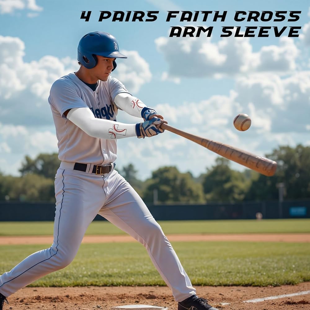 Shyyween 4 أزواج من أكمام الذراع المتقاطعة للبيسبول وأكمام صلاة البيسبول وأكمام الذراع الضاغطة الدينية هدية الإيمان للشباب