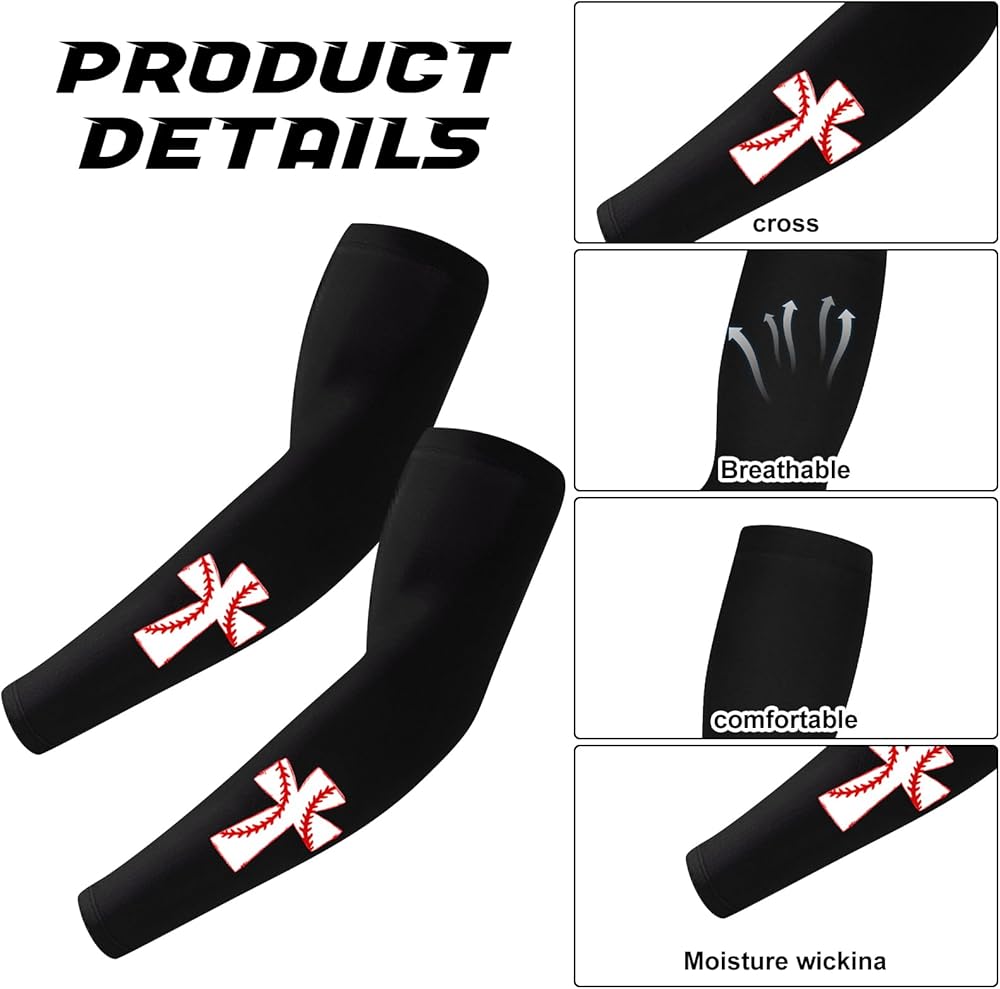 • Package List: you will get 4 pairs of baseball cross arm sleeves in black and white, 2 for each color, adorned with classic red baseball stitching, perfectly blending faith and sport; a truly meaningful gift for anyone who draws strength from God and baseball
