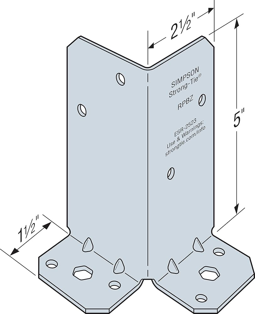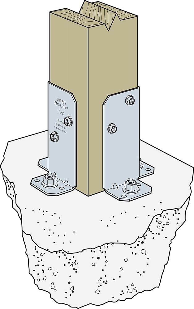 قاعدة عمود التحديثية المجلفنة من Simpson Strong-Tie RPBZ RPBZ ZMAX لمزدوج 2x4 (عبوة من 12 قطعة)