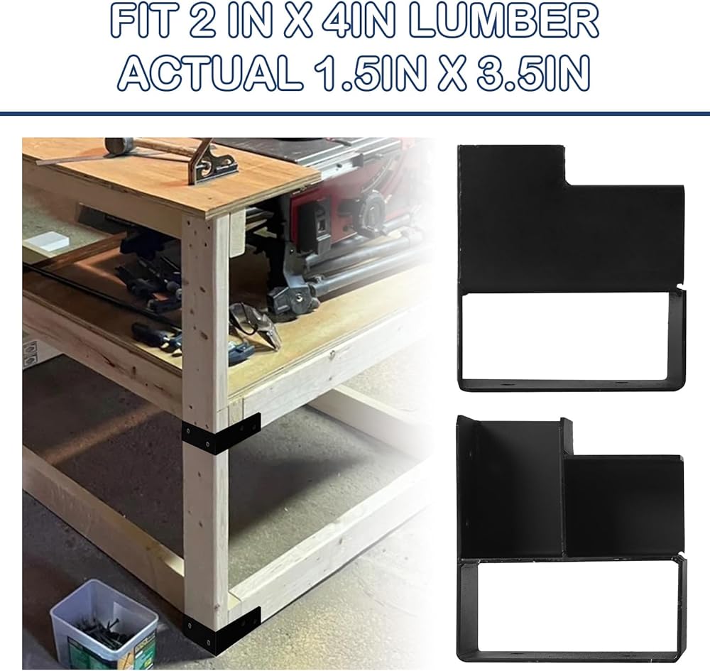 【ACTUAL 1.5x3.5"】These work bench bracket fits for 2x4 wood(the actual inner size is 1.5x3.5"). Please check the size before placing an order.