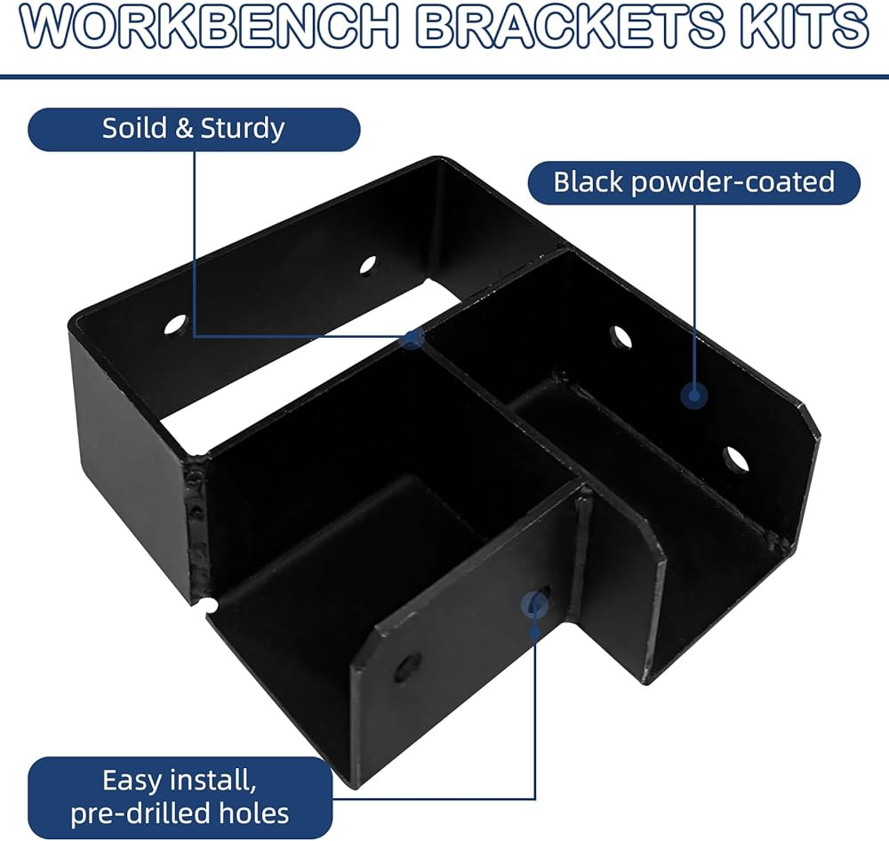 【EASY INSTALLATION】You will get 4 workbench brackets and screws.These 3-way workbench corner brackets with pre-drilled holes is easy installation for both outdoor and indoor. Please confirm the size of your wood before ordering.