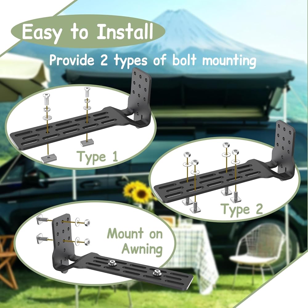 سهلة التركيب: تم تصميم دعامة المظلة لرف السقف الكل في واحد، ومجهزة بمجموعة من مجموعات التثبيت للتركيب على منصة السقف أو القضيب المتقاطع. يتضمن دليل تركيب مصور واضح خطوة بخطوة، مما يضمن تركيب دعامات مظلات سقف السيارة بسهولة وسرعة.