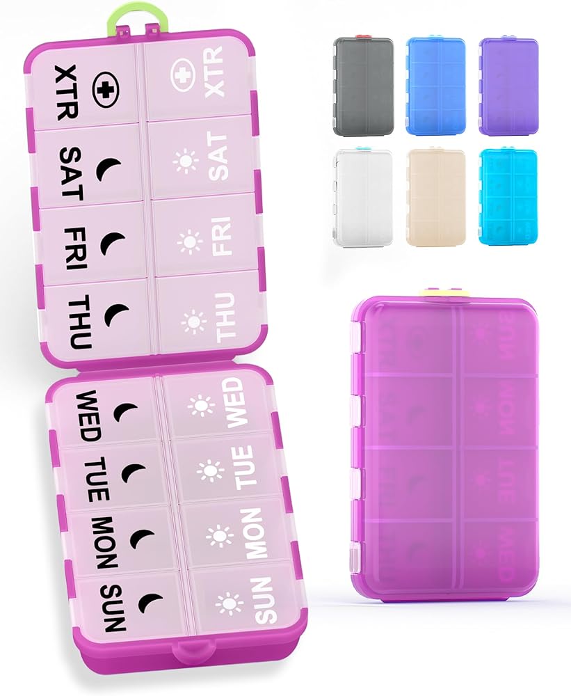 منظم حبوب الدواء WEELY: الحجم 5.86 × 3.9 × 1.2 بوصة، مع 16 مساحة لإدارة الأدوية اليومية أو الأسبوعية، بما في ذلك مقصورتين إضافيتين، التصميم القابل للطي يسمح بالاستخدام المحمول في السفر وإعدادات المكتب والحياة المنزلية