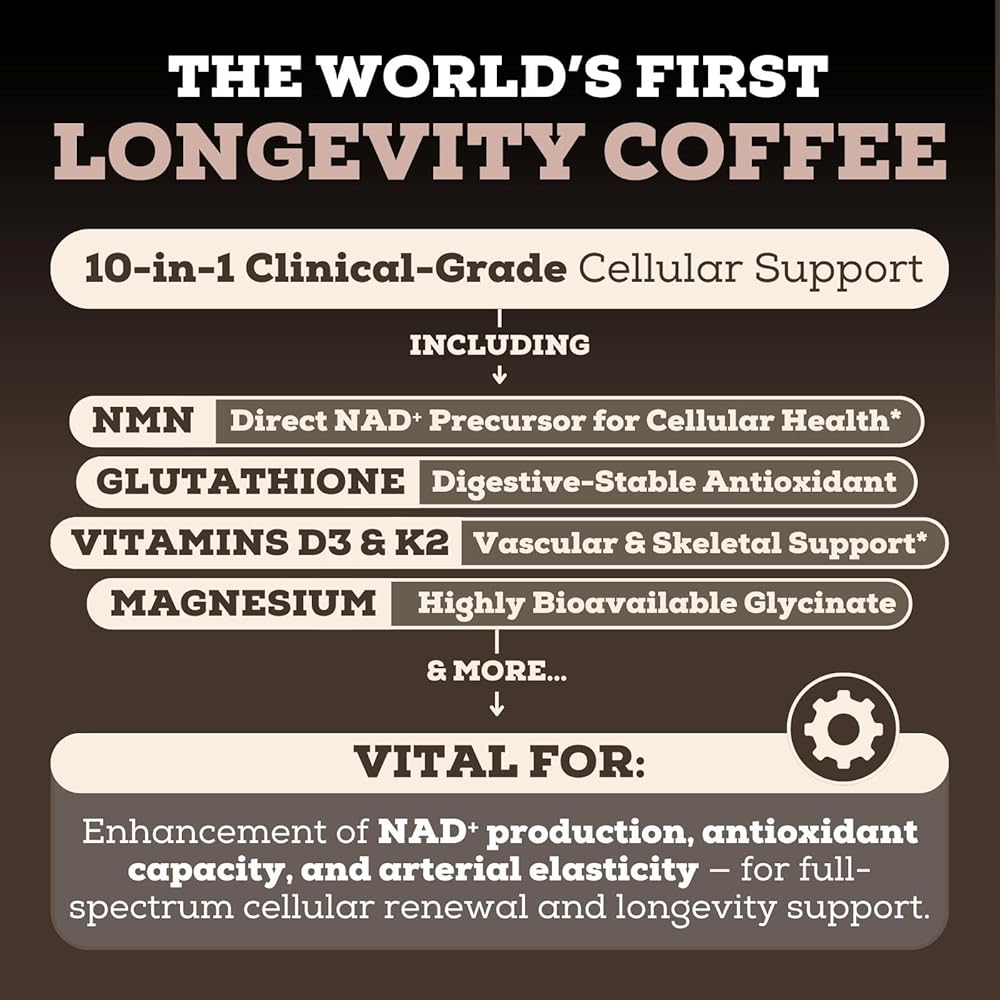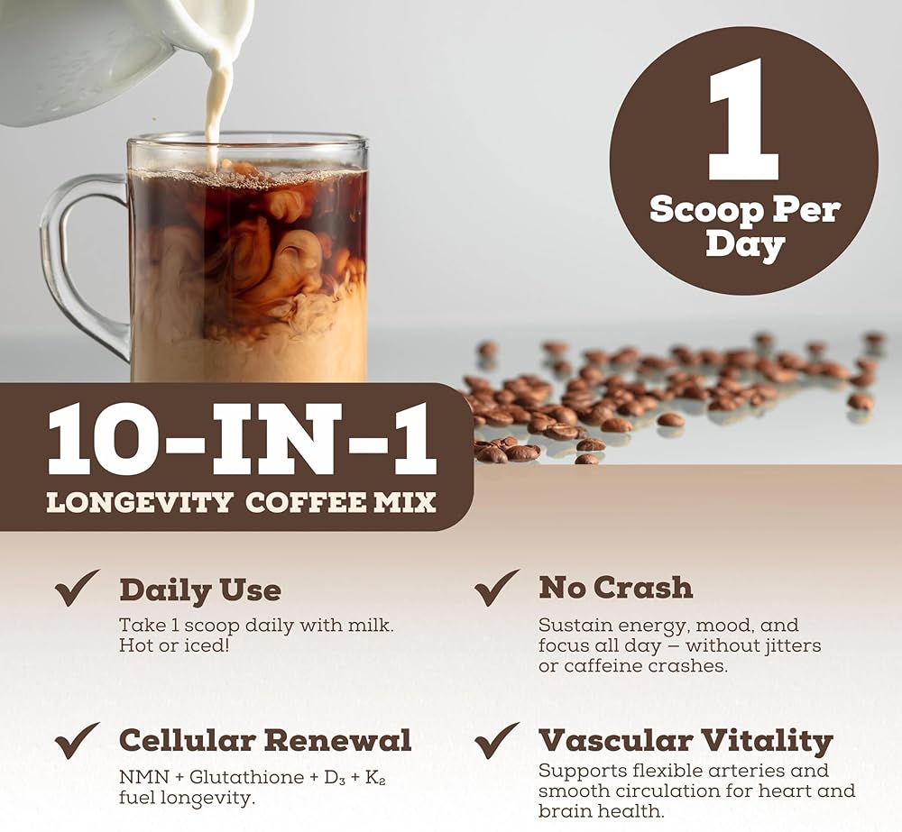 خالية من السكر، بنكهة طبيعية، سهلة الاستخدام - توفر كل حاوية 30 حصة من مزيج قهوة الموكا الصديق للنباتيين وغير المعدل وراثيًا. ما عليك سوى خلط ملعقة واحدة (13.76 جم) مع القهوة الساخنة أو الماء أو الحليب أو العصير المفضل لديك. مثالي للروتين الصباحي أو طاقة ما قبل التمرين أو التركيز بعد الظهر. مصمم للأفراد المهتمين بالصحة، والقراصنة البيولوجيين، وأي شخص يبحث عن دعم شامل لطول العمر في مشروب واحد مناسب.