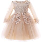 فستان أميرة بسيط بأكمام جرس طويلة شفافة. سحاب خلفي مخفي بسهولة للسماح لك بالدخول والخروج من الفستان.