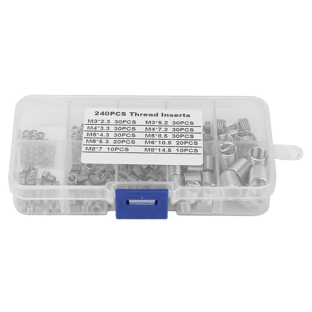 مجموعة أدوات إصلاح خيط الأكمام اللولبية من الفولاذ المقاوم للصدأ 240 قطعة، مجموعة أدوات مقاومة التآكل عالية القوة للإصلاحات الدقيقة في أجزاء السيارات الفضائية