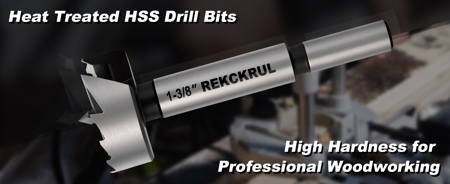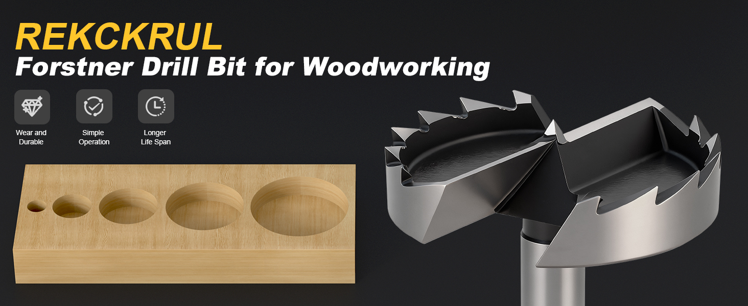 فتحات سفلية مسطحة دقيقة: تم تصميم لقمة فورستنر من REKCKRUL بحافة مسننة حادة للغاية وحافز مركزي لبدء دقيق وفتحات مسطحة مسطحة وسلسة ونظيفة بدون تقطيع أو تمزيق. مصممة للتركيب المفصلي، وفتحات الجيب، والقطع المتداخلة