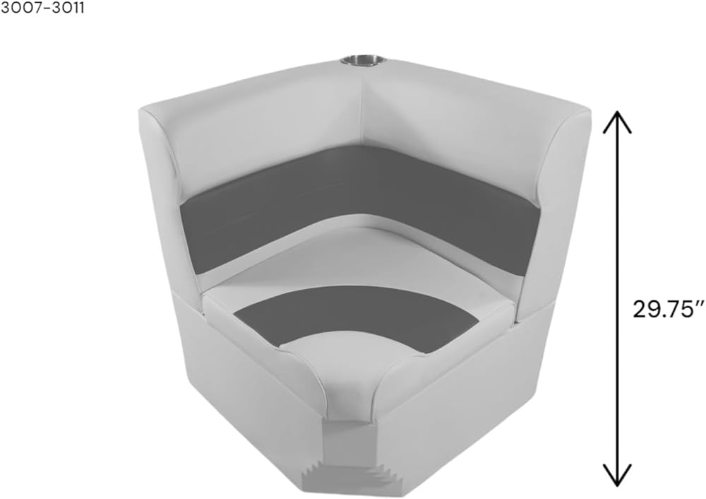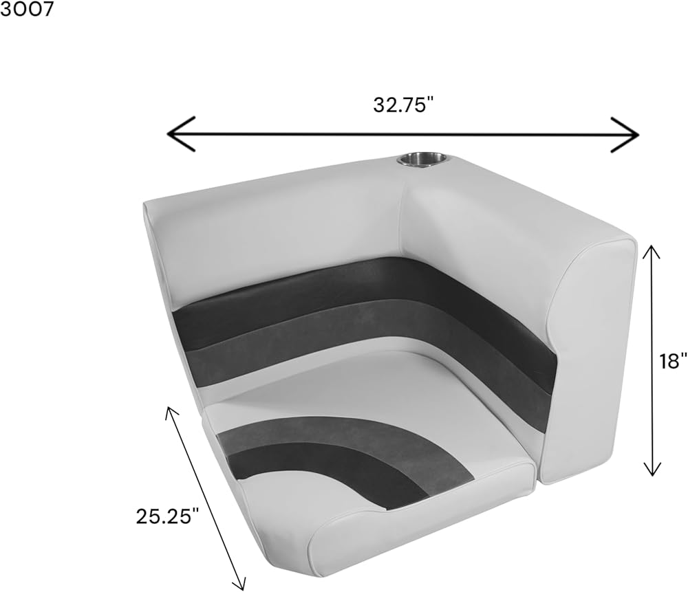 Premium Series Pontoon Radius Corner Cushion Set Only. Lift-up seat cushion design for storage access when attached to Premium Series Base (sold Separately). Contoured cushions with high compression foam padding. 28oz marine grade vinyl withstands the effects of the sun, heat, rain and staining under normal marine enviornment conditions. Perfect color and style match with Horizon Manufacturing Premium Series Pontoon Components Seat Cushion Dimensions: Width-25.25", Depth-32.75", Seat Depth-23.25", Seat Height-18"; Back Height with Base-29.75"
