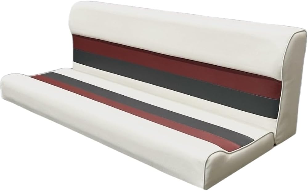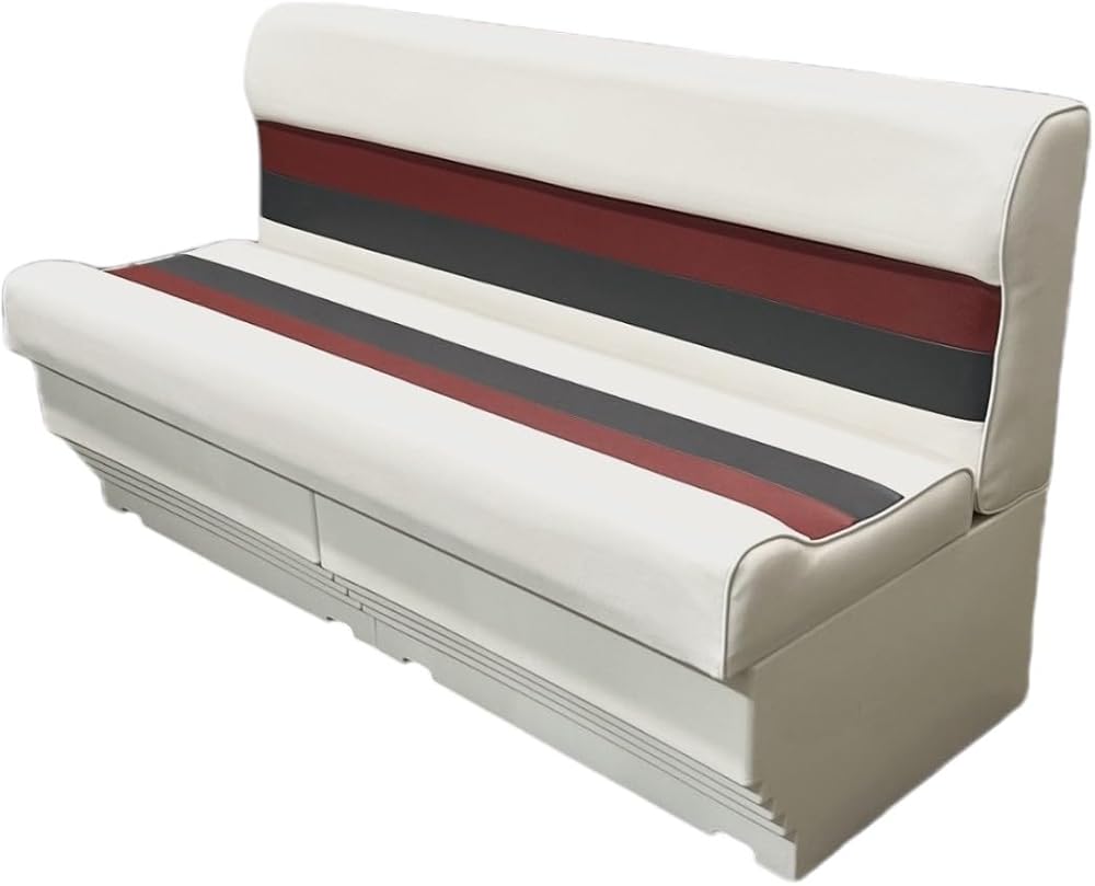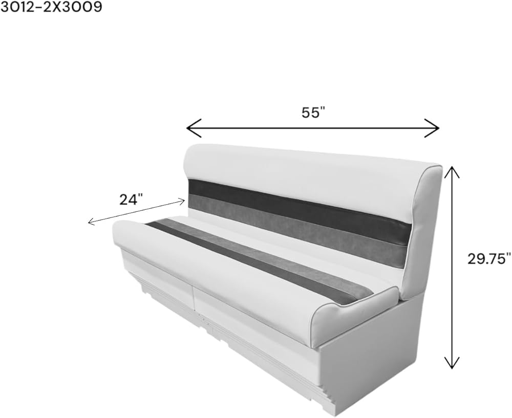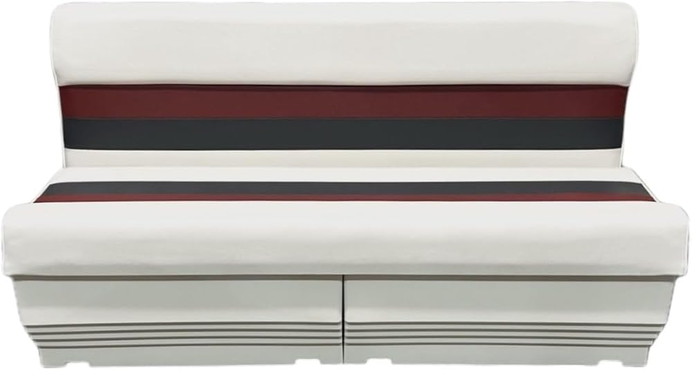 Horizon Manufacturing 55" Premium Series Pontoon Bench Seat Cushion Set with bases included (WHITE / RED / CHARCOAL) About this item · 55" Premium Series Pontoon Bench Seat Cushion with 2 bases, · Hinged Lift-Up Seat Cushion Design for Storage Access when attached to Premium Series Base · Contoured Cushions with High Compression Foam Padding and 28 oz. Marine Grade Vinyl withstands the effects of sun, heat, rain and staining under normal marine environment conditions. · Perfect Color and Style Match with other Horizon Manufacturing Premium Series Pontoon Components · Seat Cushion Dimensions: Width-55", Depth: 24", Seat Depth: 17.25"; Height with Base: 29.75" · High Impact Injected Molded Plastic Frames Roto Molded Plastic Bases Scuff resistant. Removeable Seat Cushions for Storage High Compression Foam Padding 28 oz Marine Grade Vinyl UV Treated 5 Year Warranty on Frame / Base 3 Year Warranty on Upholstery