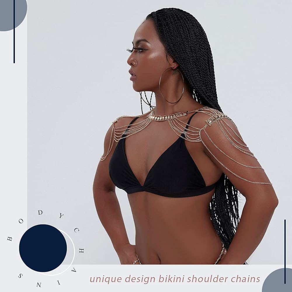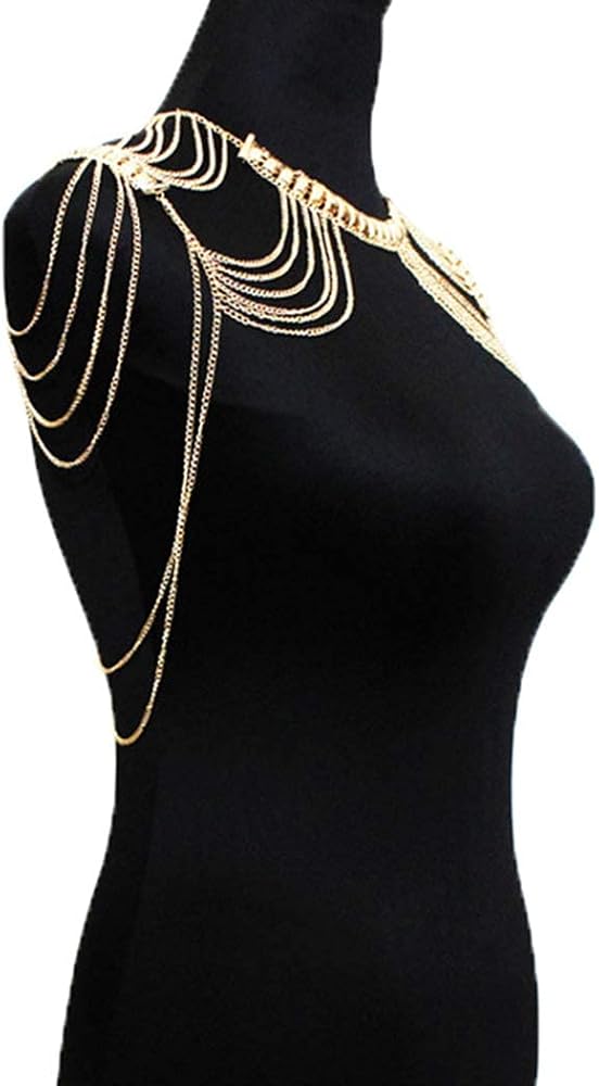 سلسلة كتف مثيرة للجسم مصنوعة من خليط معدني صلب متين عالي الجودة. قوية ولامعة للارتداء اليومي. العبوة: 1 × سلسلة للجسم