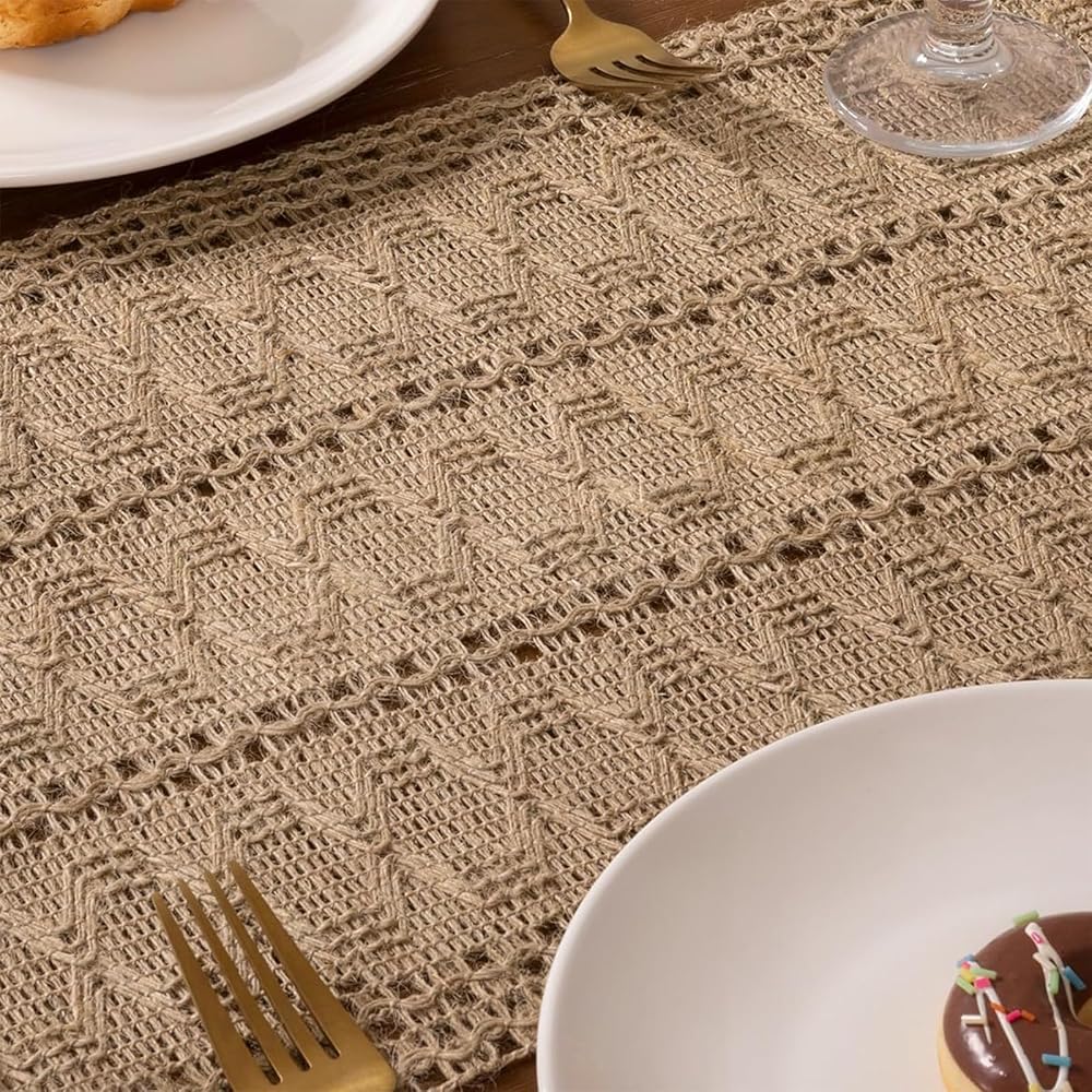 ديكور المنزل: مفرش طاولة الجوت هو إضافة مثالية لديكور غرفة الطعام البوهو، وديكور غرفة النوم، ومكتب الكتب، وما إلى ذلك. ضعه في غرفة الطعام الخاصة بك للحصول على مظهر المزرعة أو البوهو. لا يمكنها تزيين الطاولة فحسب، بل يمكنها أيضًا تزيين مشاعرك