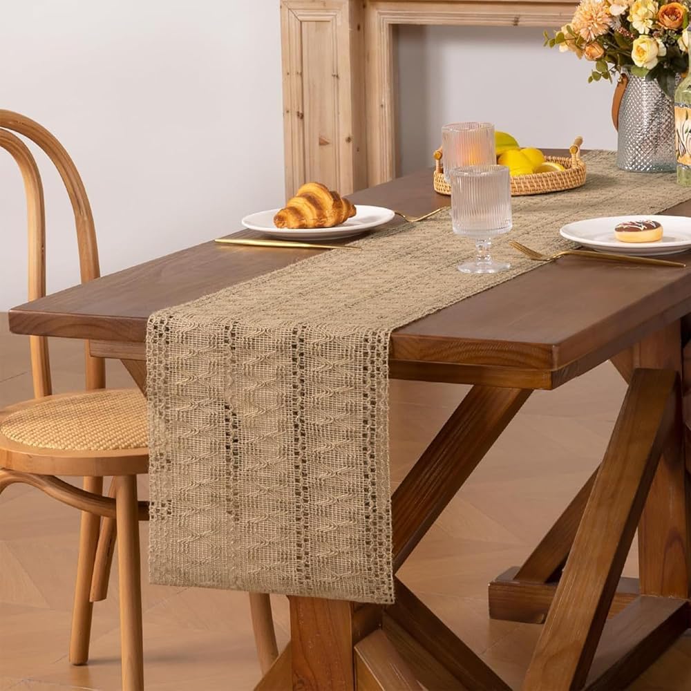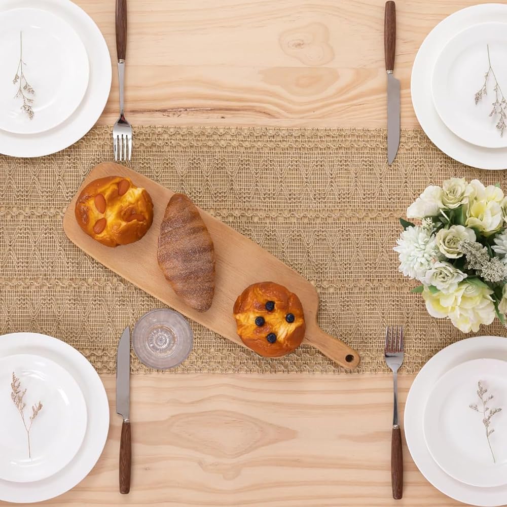 جودة عالية ومتينة: مفارش طاولة بوهو مصنوعة من الخيش والجوت. مفرش طاولة المزرعة ليس متينًا فحسب، بل ناعم الملمس أيضًا. ناعمة ومسامية، مع امتصاص جيد للرطوبة ومقاومة للحرارة، وتحمي سطح طاولتك من المقالي الساخنة والخدوش والسوائل المنسكبة.