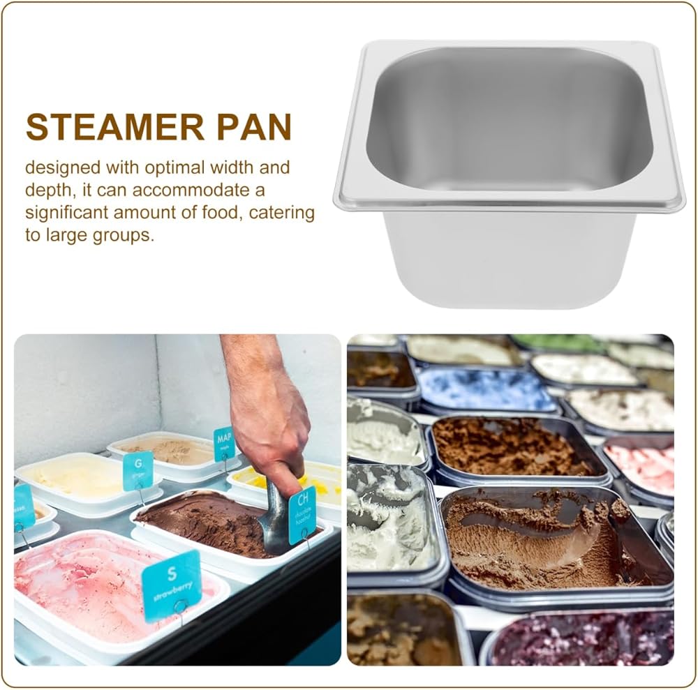 حل تقديم متعدد الاستخدامات: مقلاة البخار المصنوعة من الفولاذ المقاوم للصدأ بأبعاد 6.88 × 6.37 × 3.93 بوصة مثالية لصواني بوفيه المطاعم، ومناسبات تقديم الطعام، ومطابخ الفنادق، وهي مصممة لحمل الثلج والمعكرونة والسلطات والأطعمة المختلفة بكفاءة.