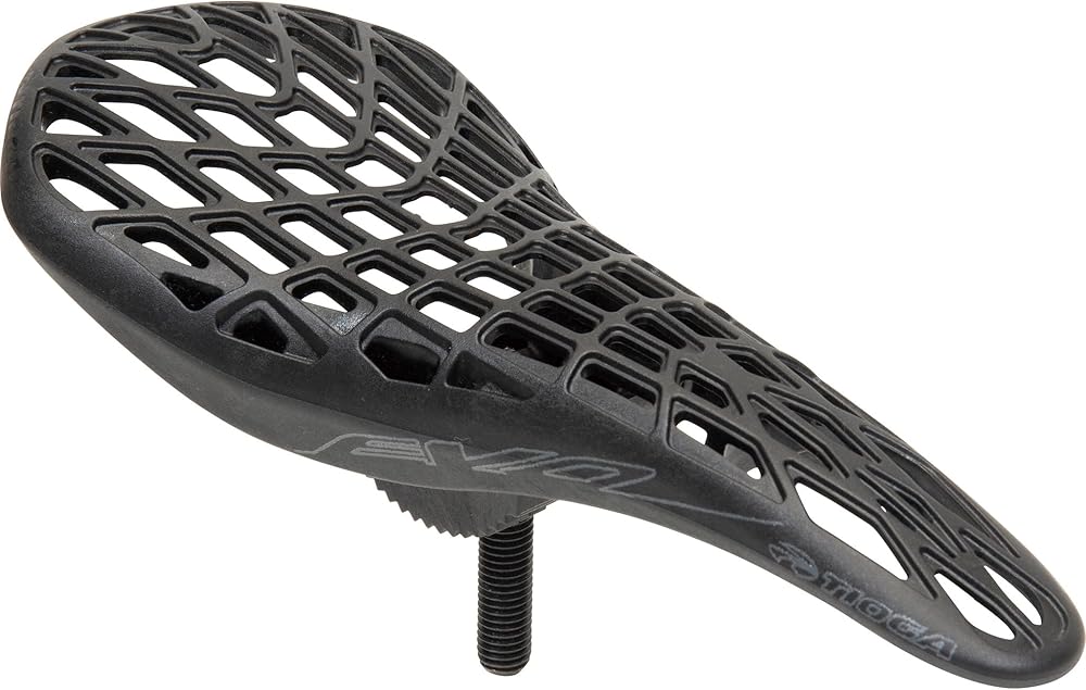 Tioga D-Spyder EVO Saddle - Black, 100mm Width with All Wrench Tool Included Optimize your BMX racing setup with the Tioga D-Spyder EVO Saddle, a precision-engineered, lightweight performance saddle designed for competitive riders. Crafted from Carbonite composite materials, this saddle seamlessly blends durability and sleek aesthetics, making it an essential upgrade for serious BMX racers. Materials & Construction: - Carbonite Composite Shell: The top shell features a high-strength, lightweight Carbonite composite construction that ensures durability and reduces weight to just 100 grams, enhancing your bike's agility. - Pivotal Clamp & Rails: Equipped with a pivotal clamp system and rails, the saddle allows for quick, secure adjustments, tailored to your preferred riding position. Performance & Engineering: - Optimized Shape: Matching the contours of modern BMX frames, the D-Spyder EVO's swooping design provides a more aerodynamic profile and zero disruption under aggressive riding motions, ensuring comfort during high-intensity races. - Slim & Sleek Profile: Its slim 100mm width and seamless contour lines reduce weight and minimize drag, giving you a competitive edge in race scenarios. - Integrated Seatpost Compatibility: Features a shape similar to the EVO with an integrated seatpost clamp, streamlining your bike's aesthetic while maintaining superior performance. Components & Technology: - Alloy Pivotal Hardware: The saddle includes lightweight alloy pivotal hardware for secure clamping and easy adjustments-only accessible with the included specialized Allen wrench, promoting quick setup changes. - Limited Edition Accessibility: Comes with an all-in-one wrench tool, allowing you to install or tweak the saddle efficiently on the trail or at the race site. Style & Use Case: - Design for BMX Racing: Specifically engineered for BMX riders who demand speed, responsiveness, and durability, making it perfect for track racing, stunt riding, and intense BMX comp