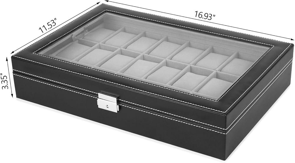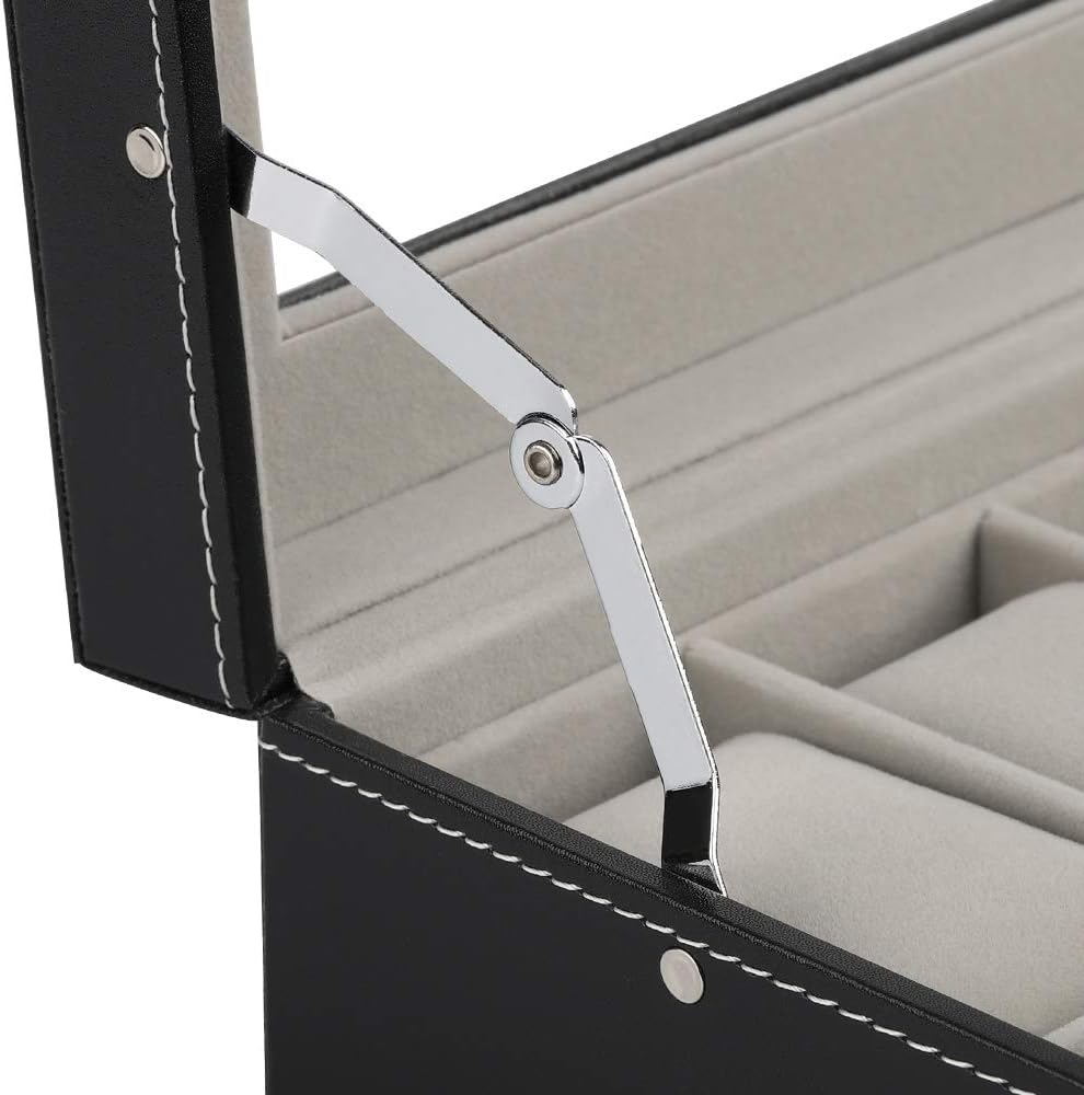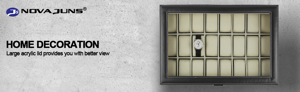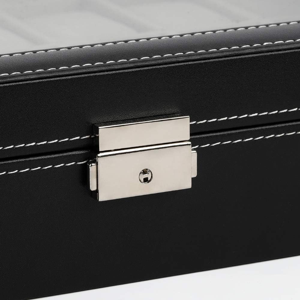 غطاء وقفل أكريليك كبير: غطاء أكريليك كبير يحافظ على ساعاتك من الغبار. سوف تمتلك رؤية واسعة ويمكنك العثور على الكنز الأكثر ملاءمة في ثوانٍ في صندوق منظم ساعتك، كما يضمن القفل المعدني المزود بمفاتيح السلامة.