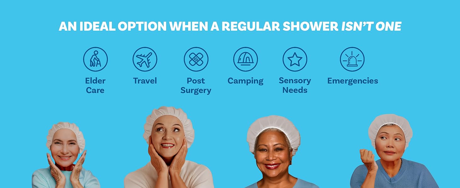 قبعات شامبو سكروبز بدون شطف لكبار السن والمرضى طريح الفراش، قبعات شامبو مجانية للشطف لمرحلة ما بعد الجراحة والإقامة في المستشفى، قبعات استحمام لغسل الشعر بدون ماء - 6 عبوات in Kuwait