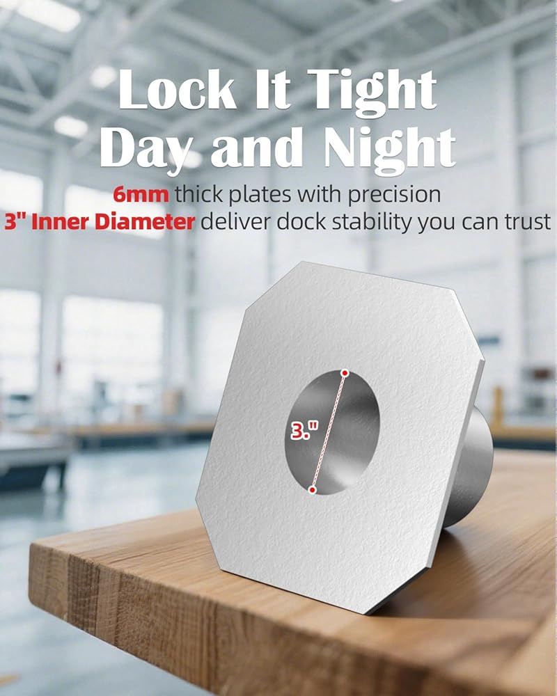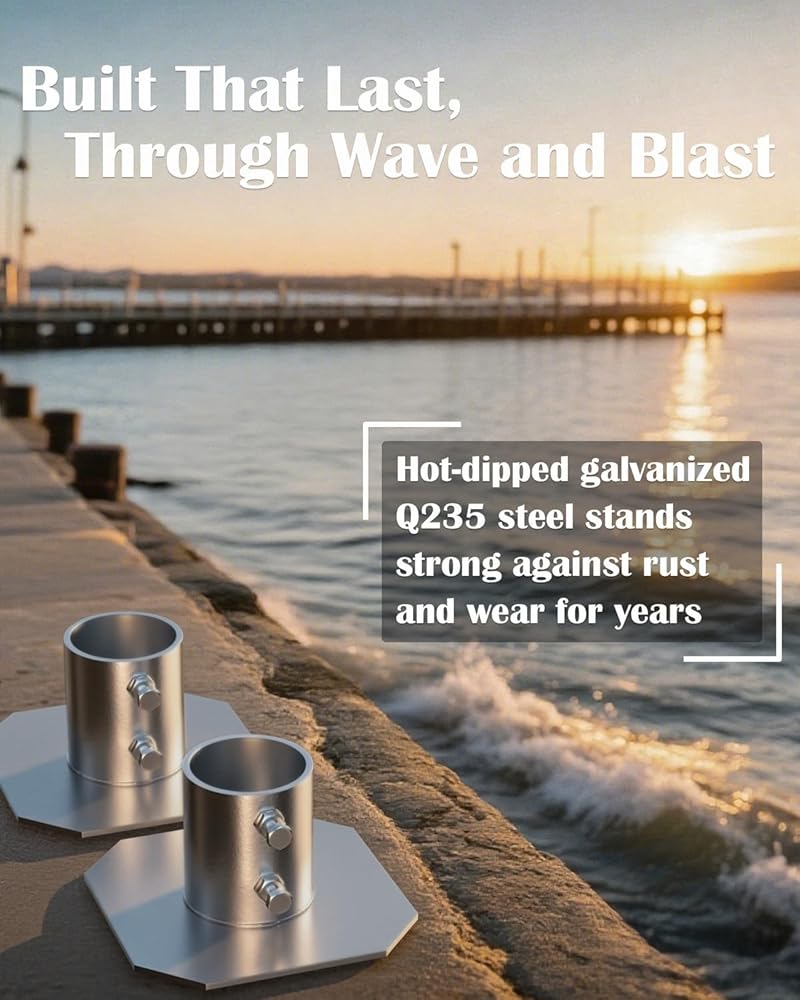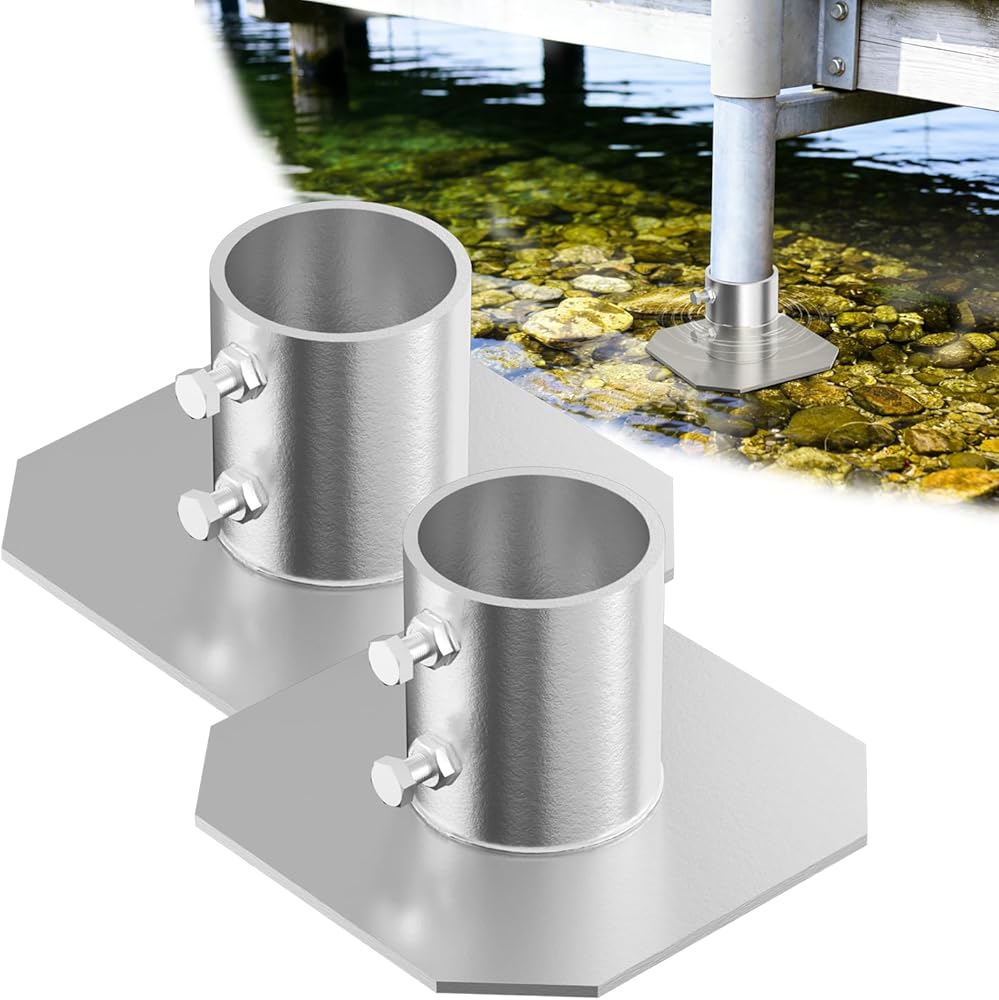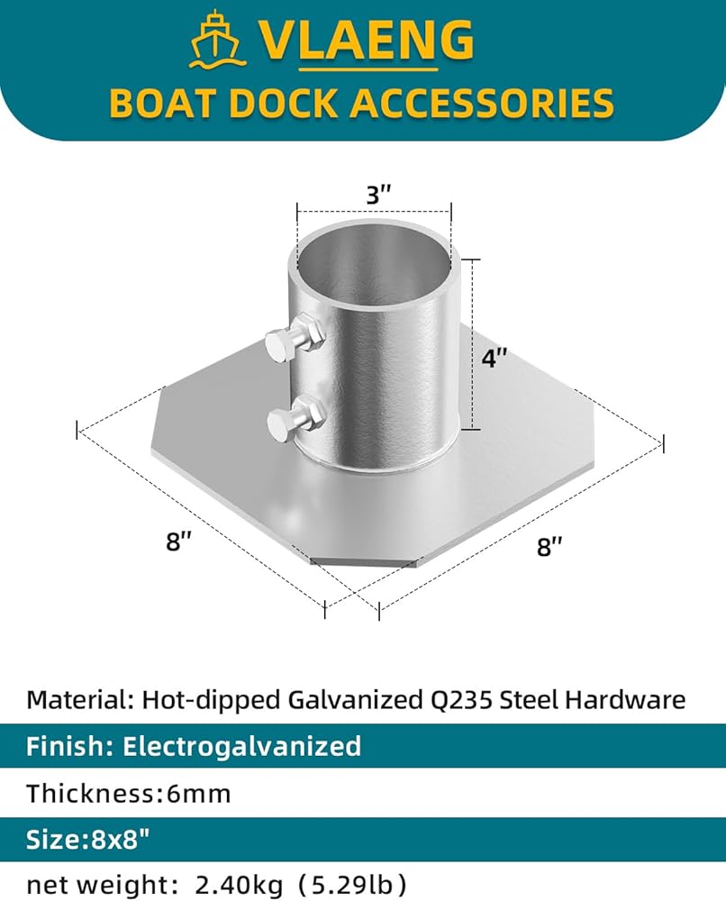 PREVENTING SINKING: Dock hardware is designed for fixing dock posts, the bottom 4.7" metal base plate can effectively disperse the pressure and increase its stability, which is a effective solution to dock posts sinking into the muck.