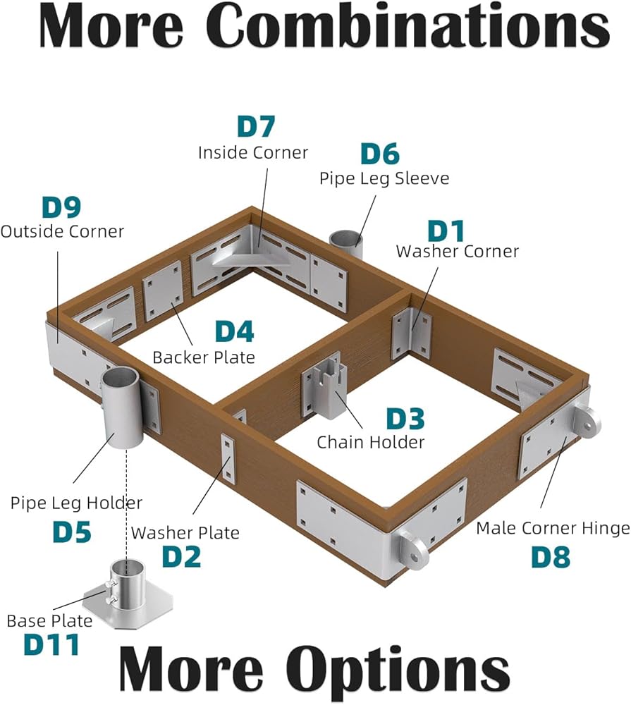 STABILITY GUARANTEED - These floating dock base plate are made of hot-dipped galvanized Q235 steel hardware, the same as the galvanized material commonly utilized in floating dock assemblies. Providing reliable stability for your dock structures on wooden deck material surfaces.