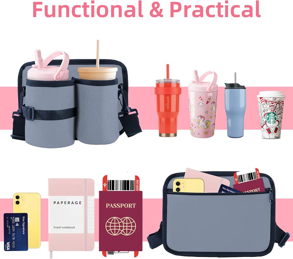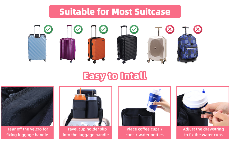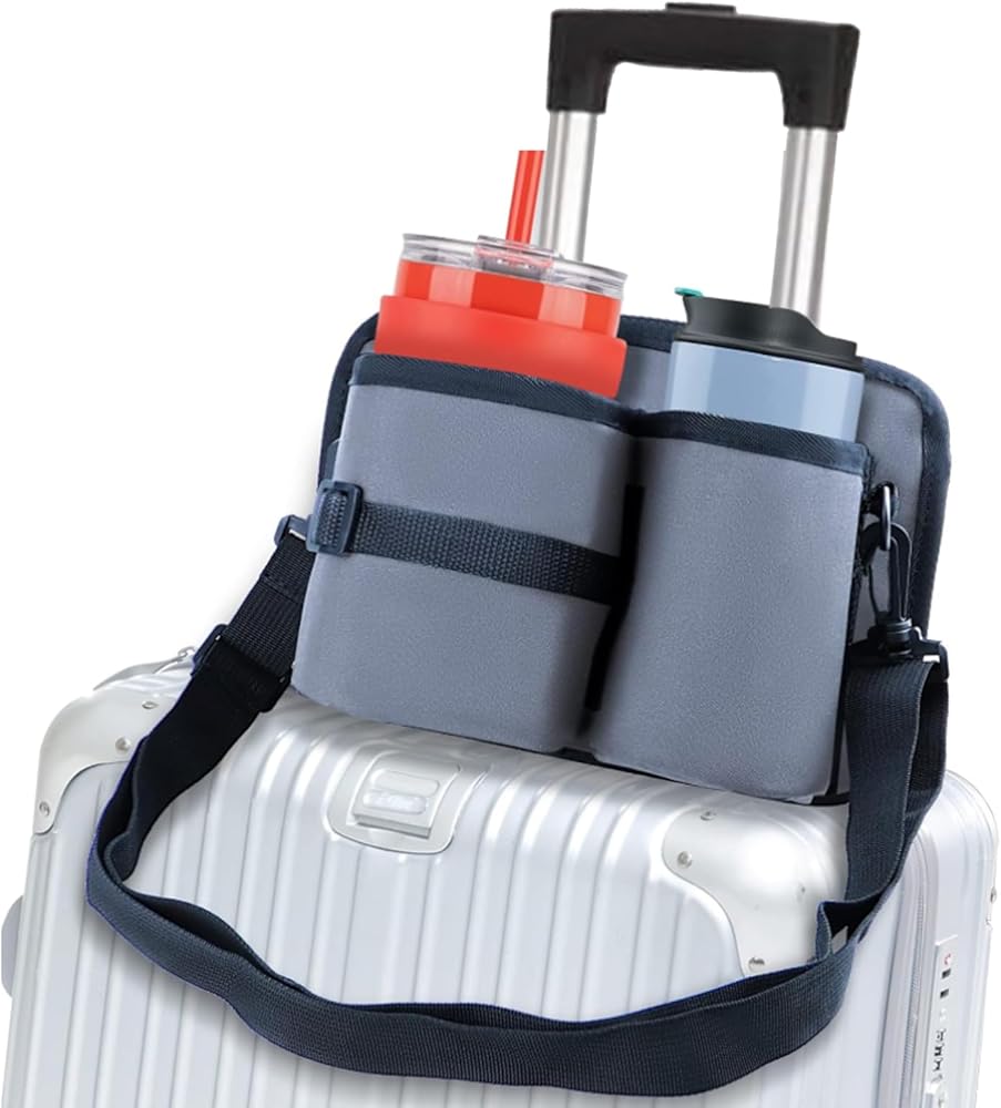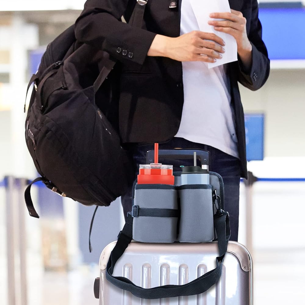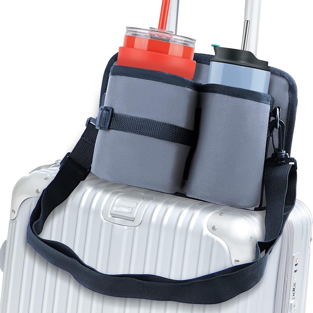【هدايا للمسافرين】إكسسوارات السفر للطائرة/محطة القطار. حامل أكواب السفر للأمتعة يمثل هدايا أفضل للنساء المضيفات، وهدايا للأشخاص الذين يسافرون، وطلاب العودة إلى المدرسة / العطلات، ورجال الأعمال / النساء، والآباء الذين لديهم أطفال - حرر يديك عند السفر أو في رحلة عمل أو الاعتناء بالأطفال. أطفال.