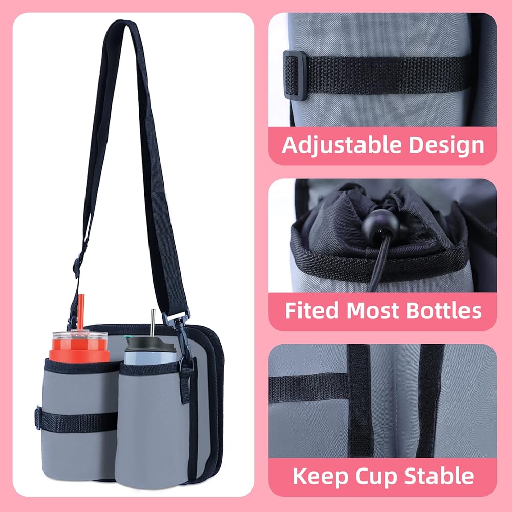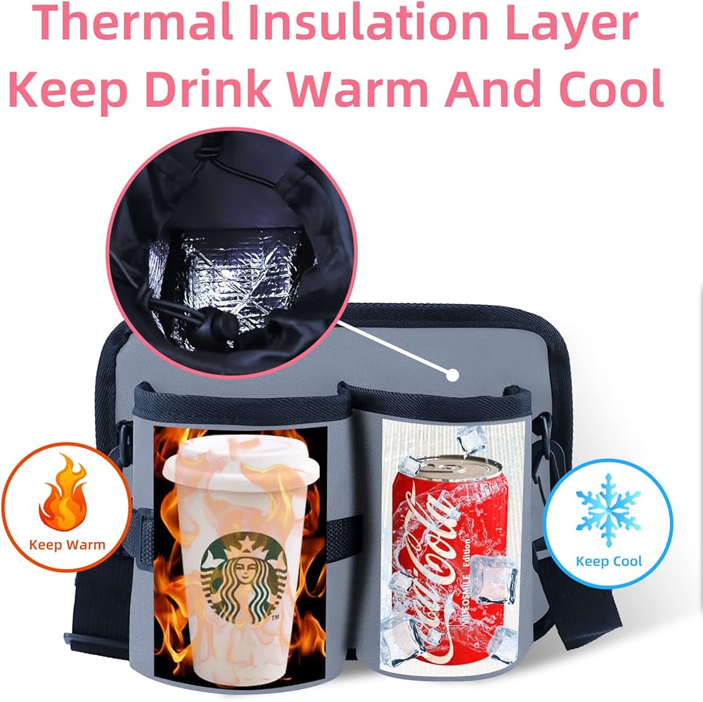 【مادة فاخرة】حامل أكواب للأمتعة مصنوع من مادة ألياف البوليستر عالية الجودة، والجزء الداخلي لكل حامل أكواب للأمتعة مصنوع من العزل الحراري للحفاظ على مشروبك باردًا ودافئًا. حامل أكواب الحقيبة مصنوع بحرفية متقنة، ومقاوم للاهتراء، وسهل التنظيف، وقابل للغسل، ولن يتغير شكله.