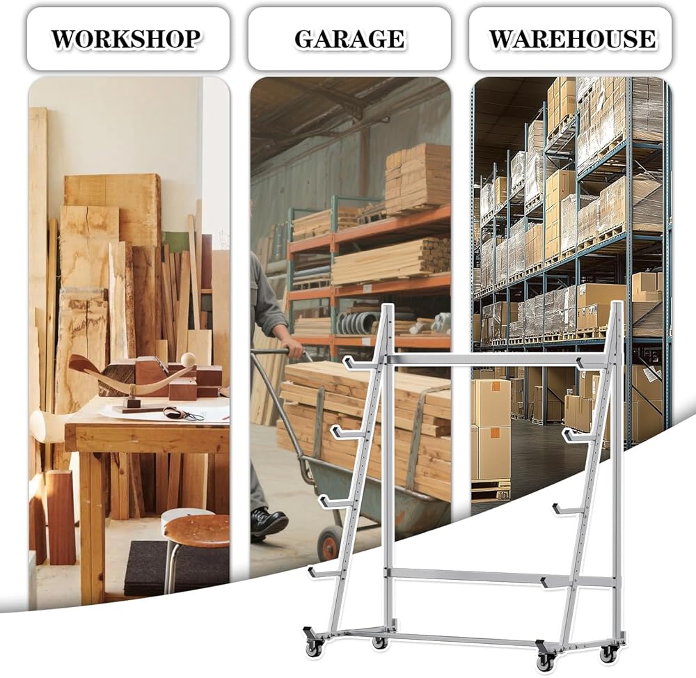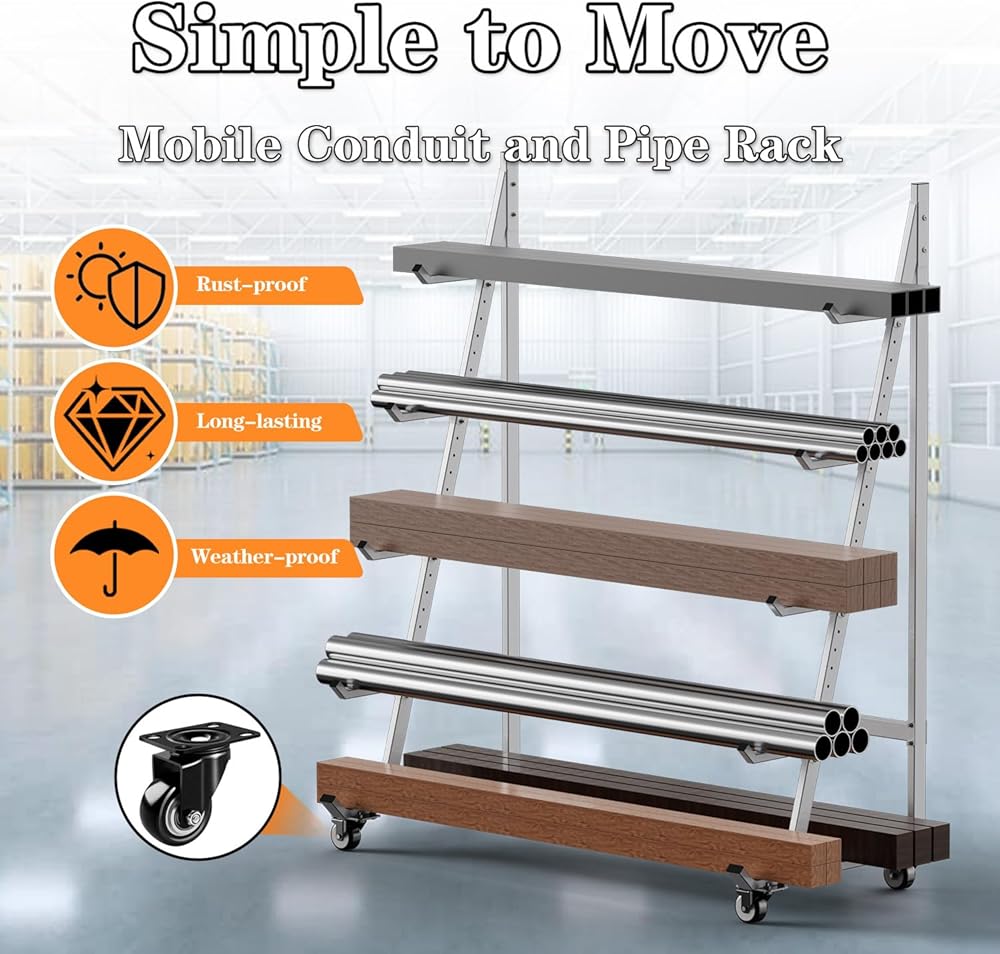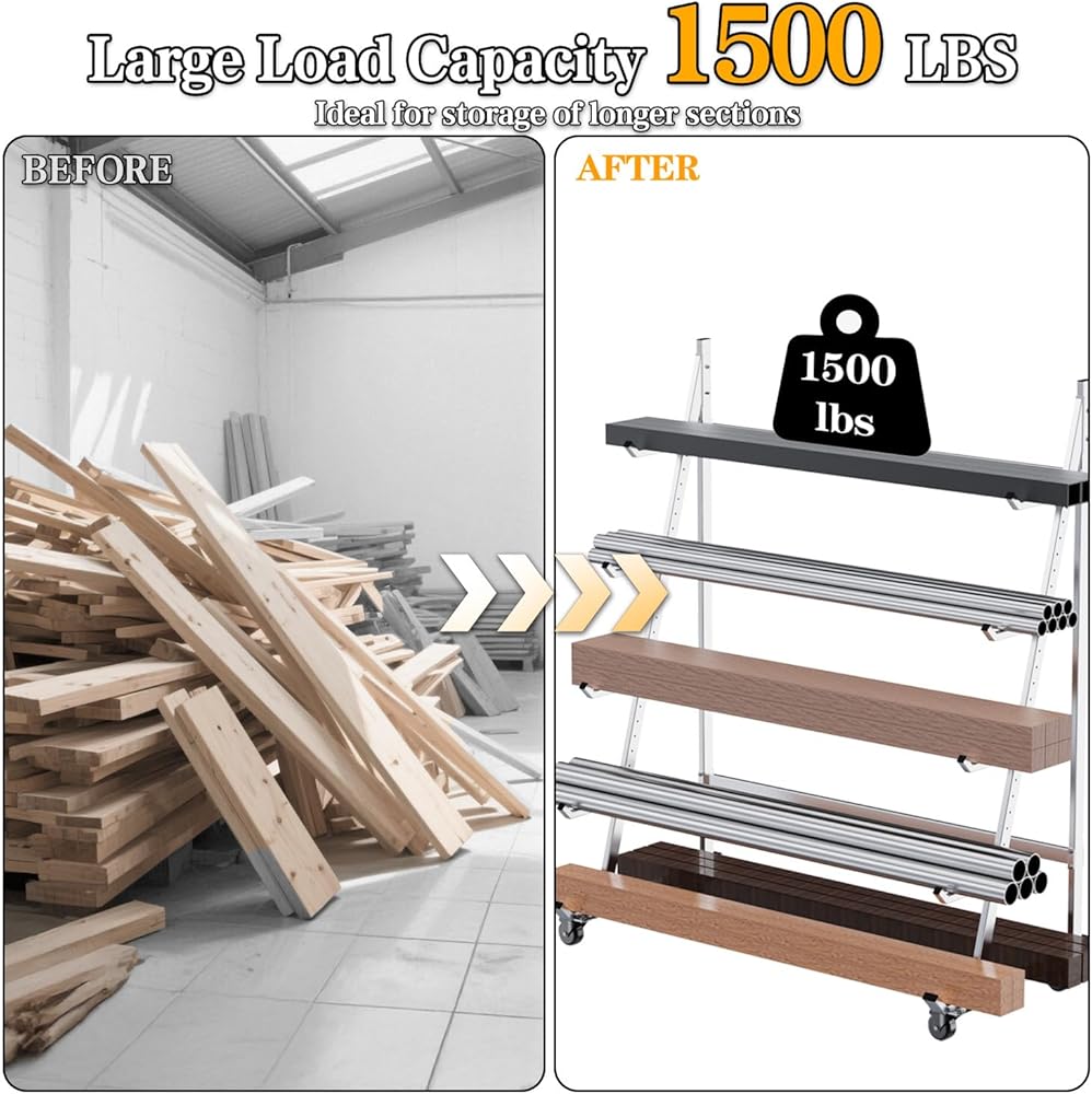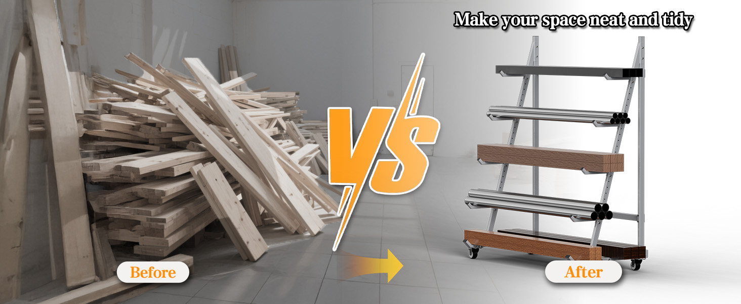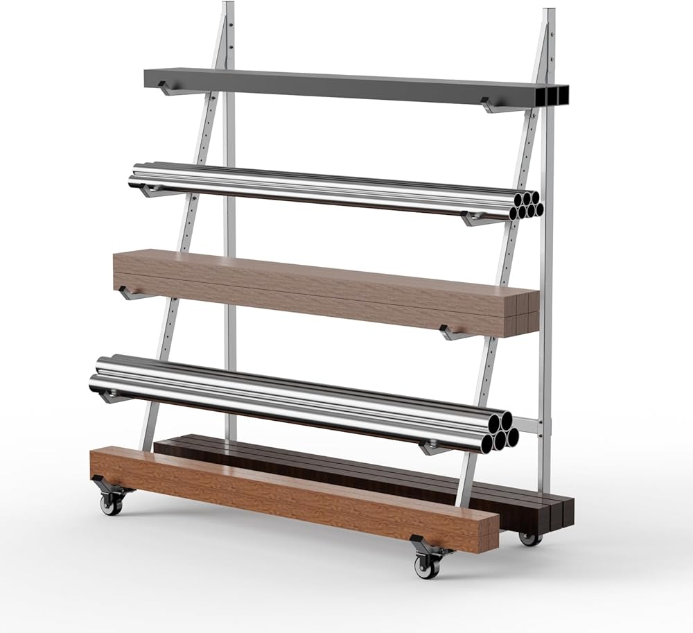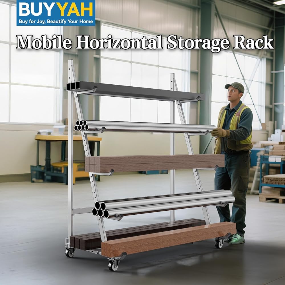 رف تخزين متنقل: رف التخزين الأفقي الخاص بنا مجهز بعجلات مقاس 3 بوصات حتى تتمكن من فرز الخشب والأنابيب والقناة بكفاءة حسب الحجم والنوع للحفاظ على تنظيم عملك.