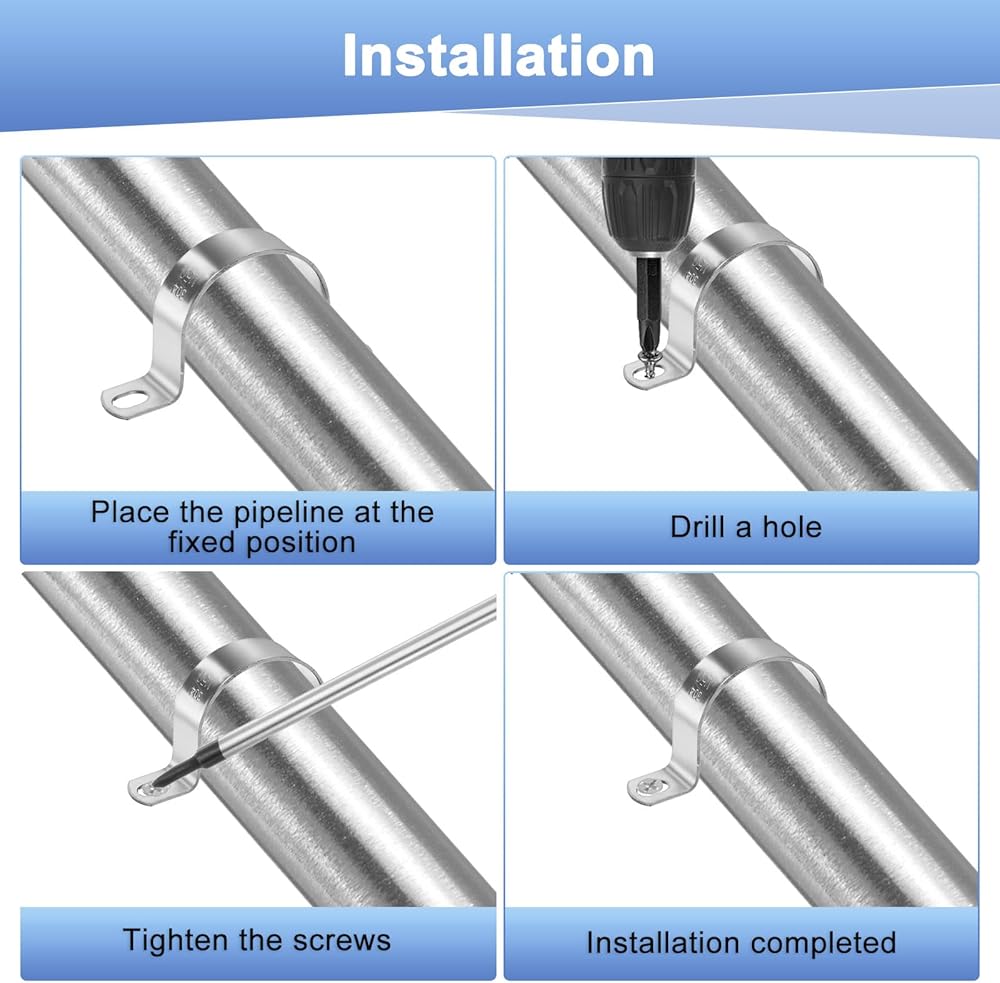 Please accurately measure the pipe diameter to select the matching clamping size. Just align the pre-drilled holes and tighten the screws to firmly fix it.