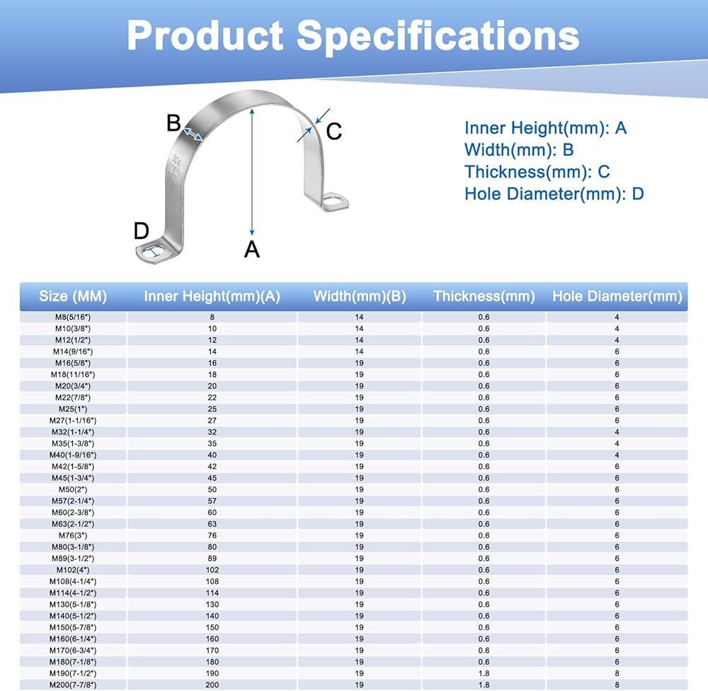 1. Our metal u tube pipe clamps are made of 304 stainless steel, which are sturdy and durable, not prone to rust or corrosion, and do not deform easily after long-term use. Its polished and burr-free surface ensures smooth installation while firmly fixing the pipes and hoses.