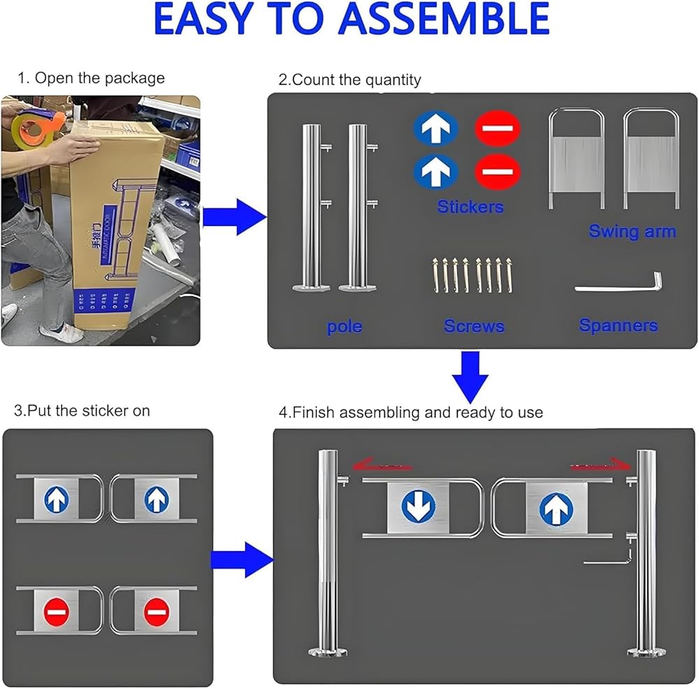 ➷【Widely Used】 : Swing gate can be used in any space such as supermarkets factory aisles park aisles school canteens shops car parks office buildings and crowded places. It can instruct the crowd to take the designated access channel.