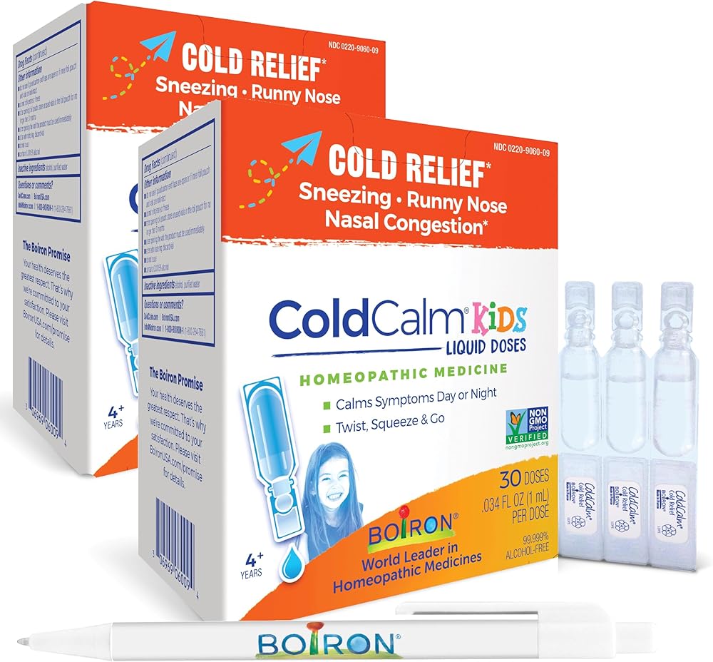 BUNDLE PACK OF KIDS' MULTI-SYMPTOM COLD RELIEF: ColdCalm Kids relieves common cold symptoms, including sneezing, runny nose, nasal congestion, and minor sore throat.* Non-drowsy formula with no known drug interactions for children ages 4 and up. Comes with a Boiron pen!