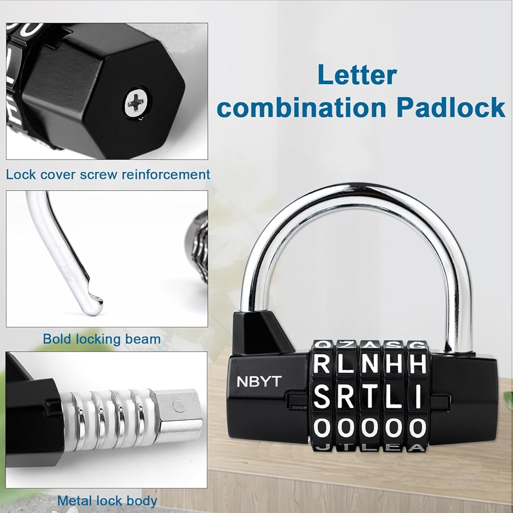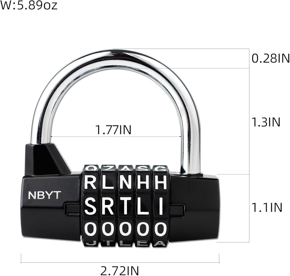أمان متعدد الاستخدامات: قفل مركب مكون من 5 أحرف مثالي لخزائن الصالة الرياضية والبوابات والدراجات والخزانات وغيرها من احتياجات التخزين التي تتطلب حماية موثوقة